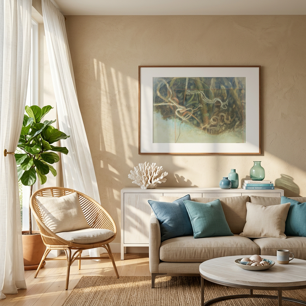 "February" Serene Coastal Watercolor Art Print - Large Format Canvas Framed Options