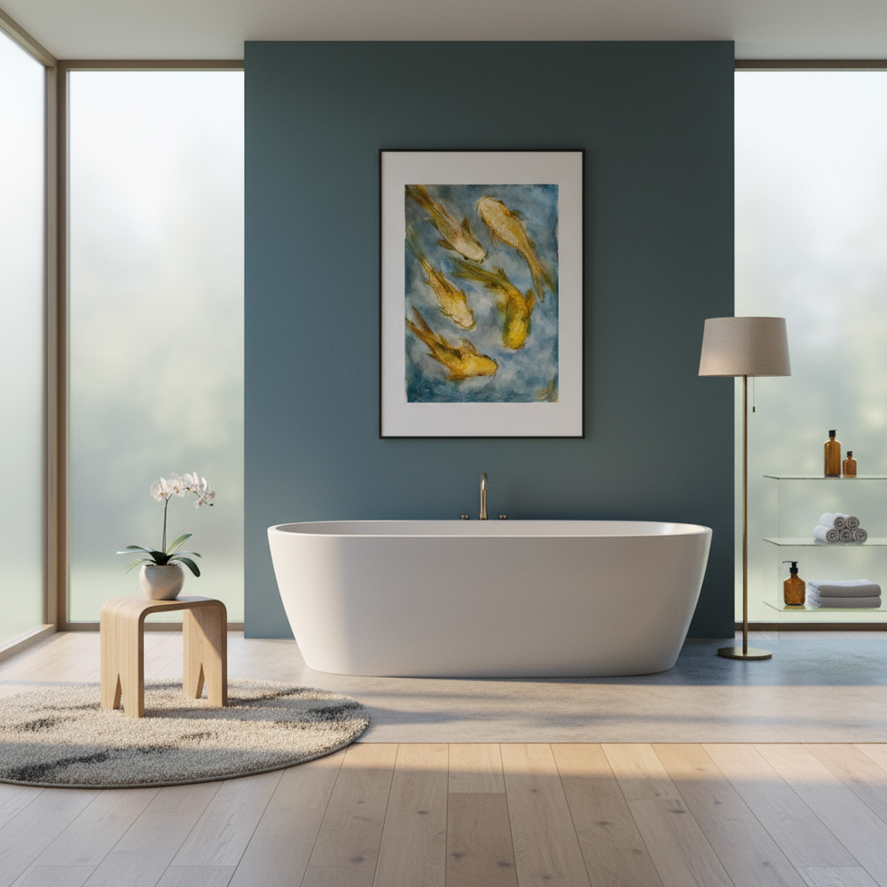 Swirling Koi Fish Watercolor Art Print - Framed Options