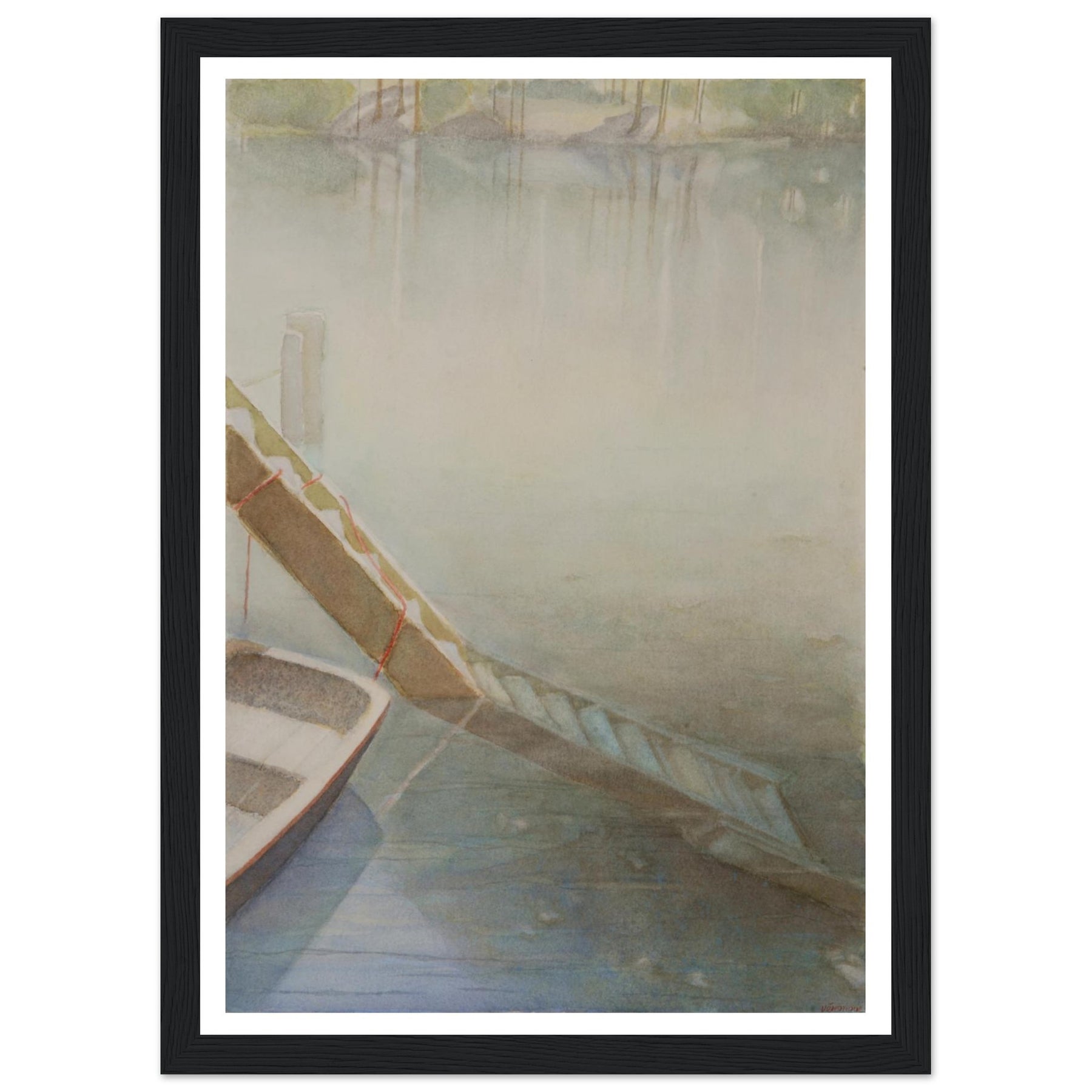 “Foschia sul Lago” evokes the stillness of early morning light over a quiet lake, where mist hangs like breath on glass. This delicate watercolor captures the solitude of a docked rowboat and the soft gradients of water and air. A perfect piece for creating a serene, contemplative space, this artwork invites the viewer to pause and exhale—ideal for bedrooms, reading nooks, or calm and reflective spaces.
