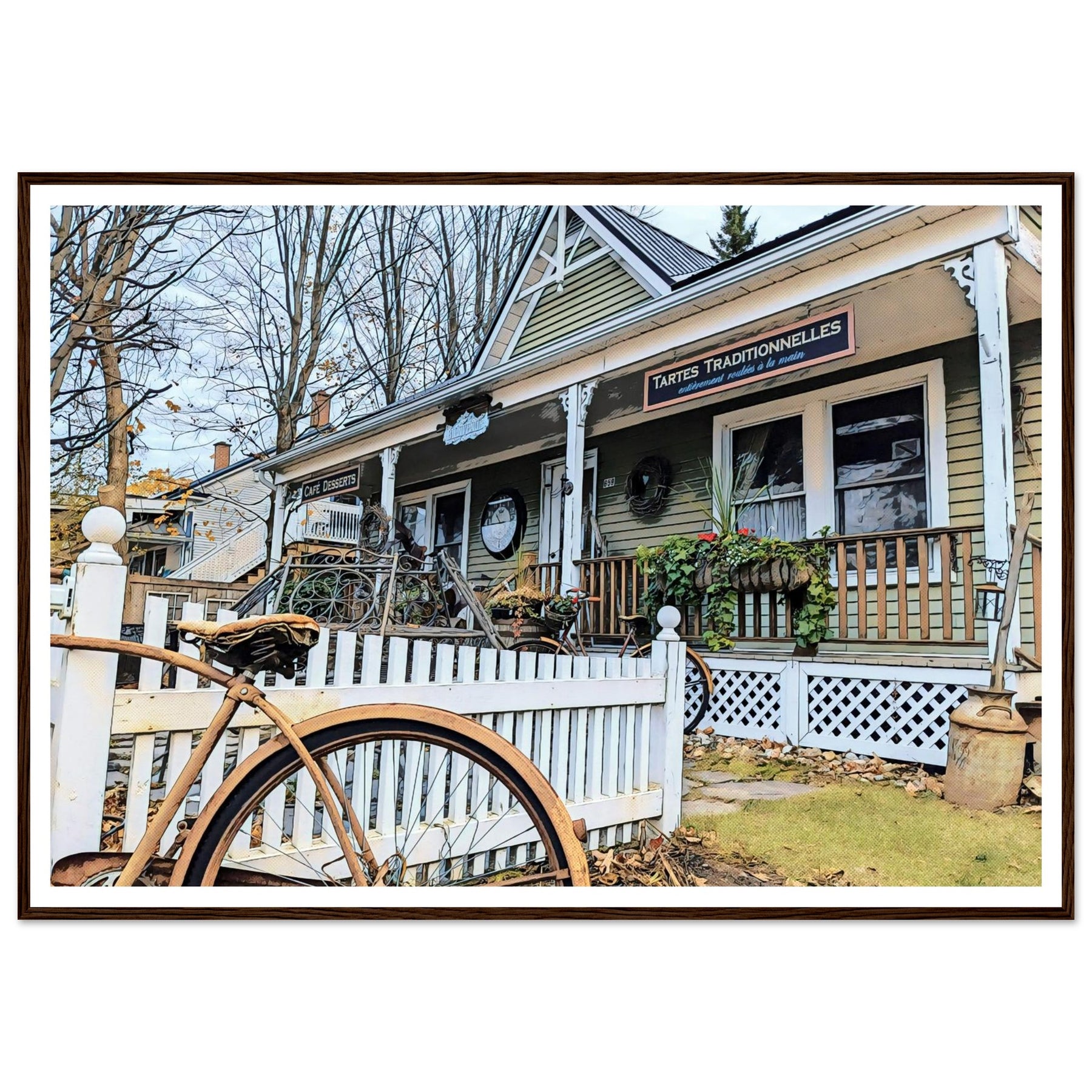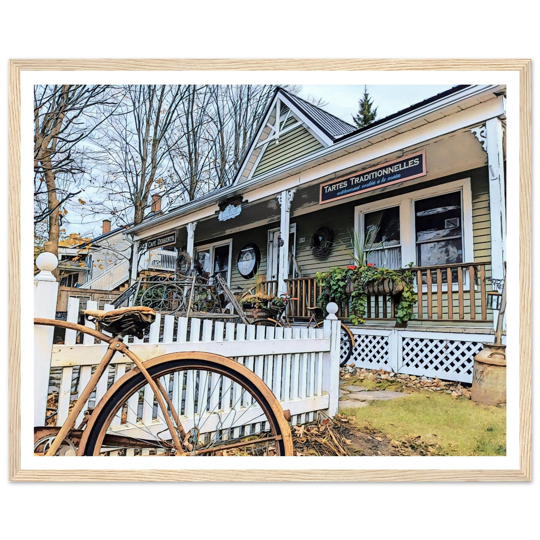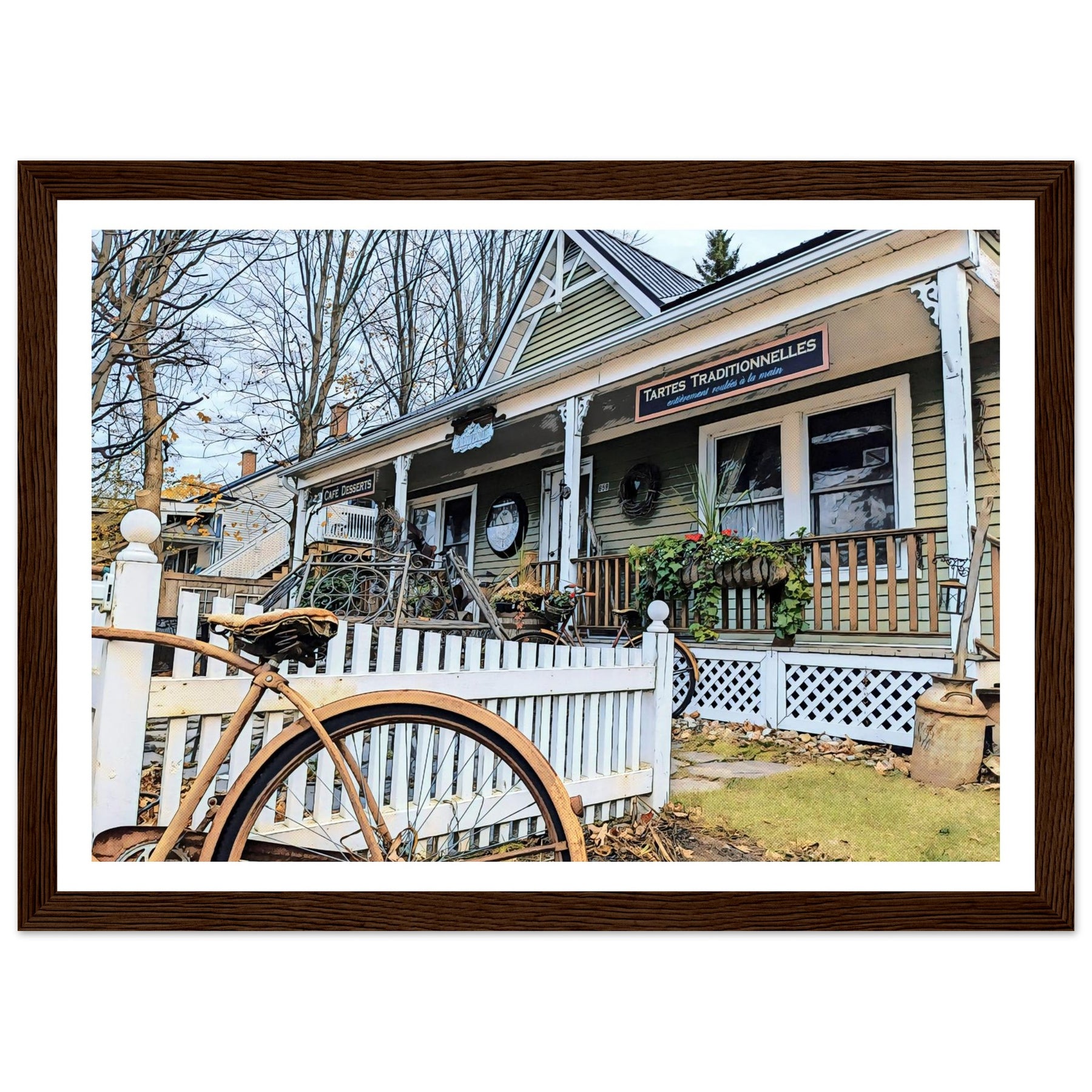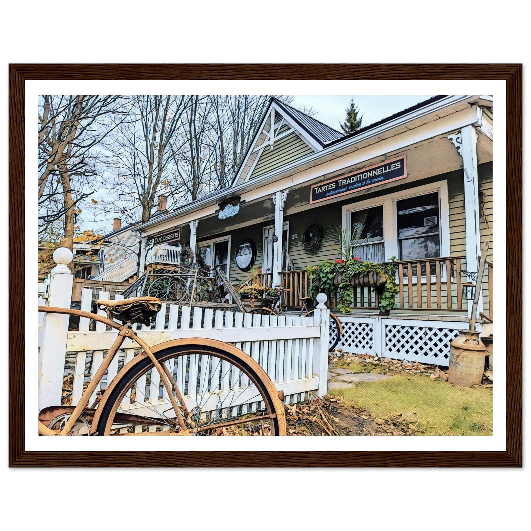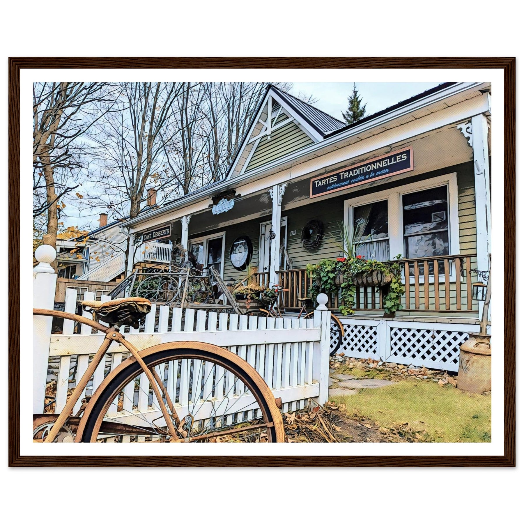 Charming Bakery Scene with Antique Bicycle in Bromont - Premium Matte Wooden Framed Print