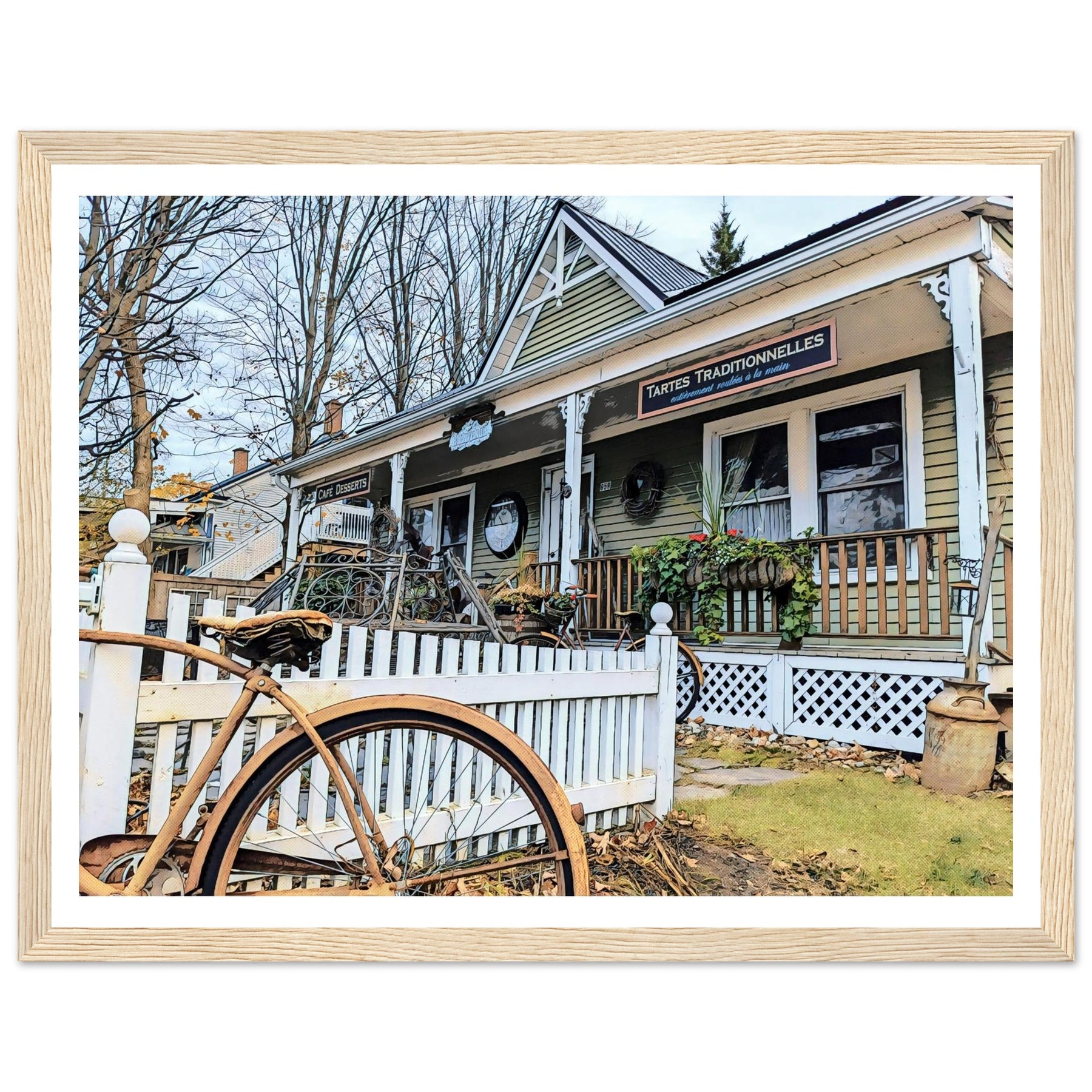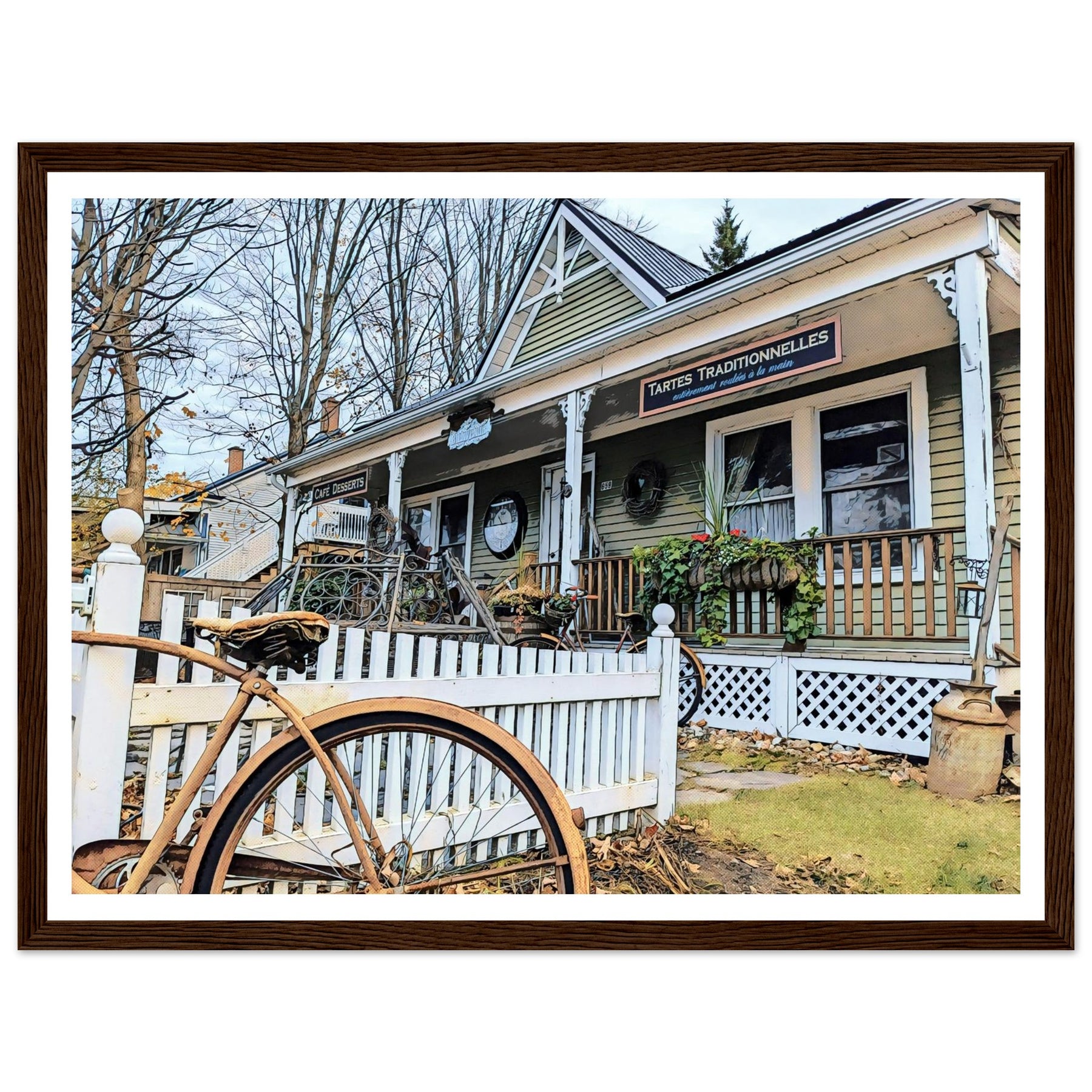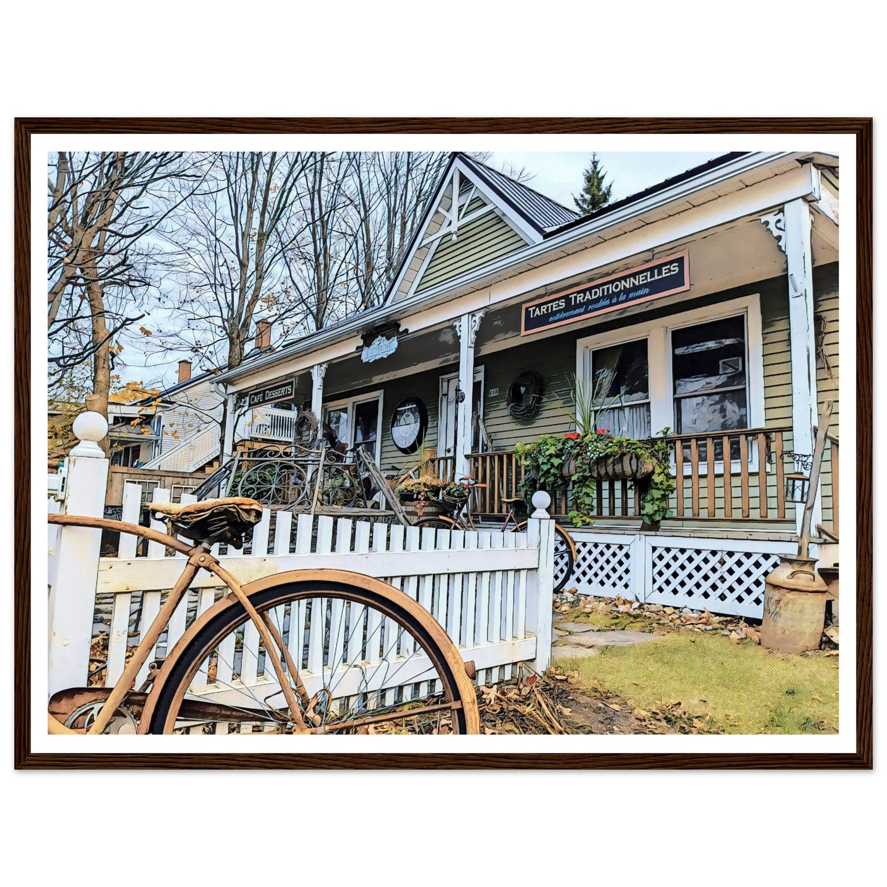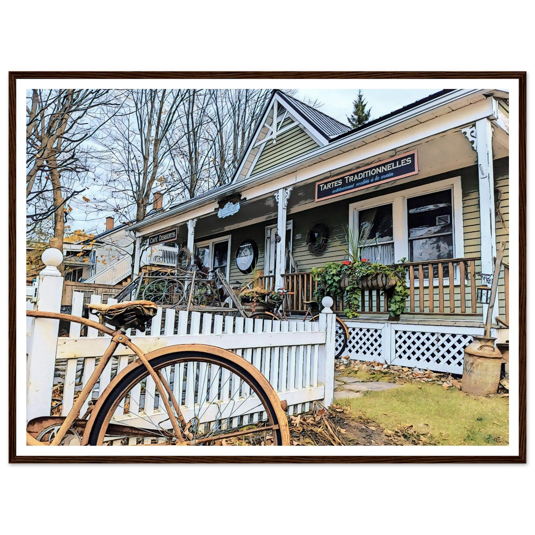 Charming Bakery Scene with Antique Bicycle in Bromont - Premium Matte Wooden Framed Print