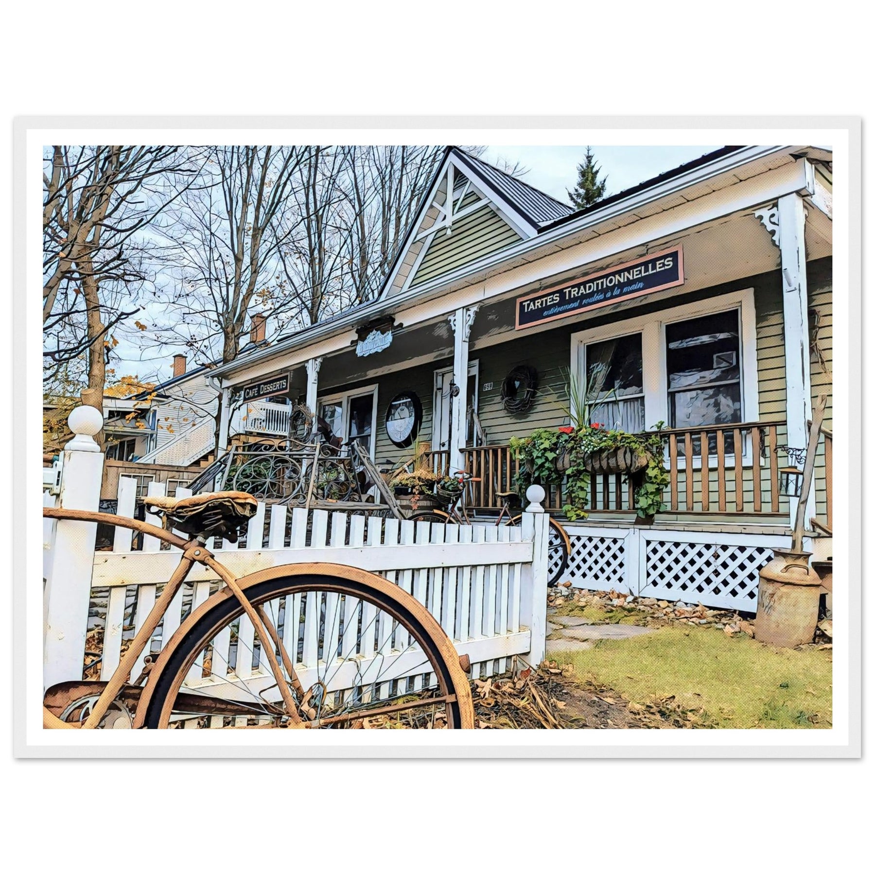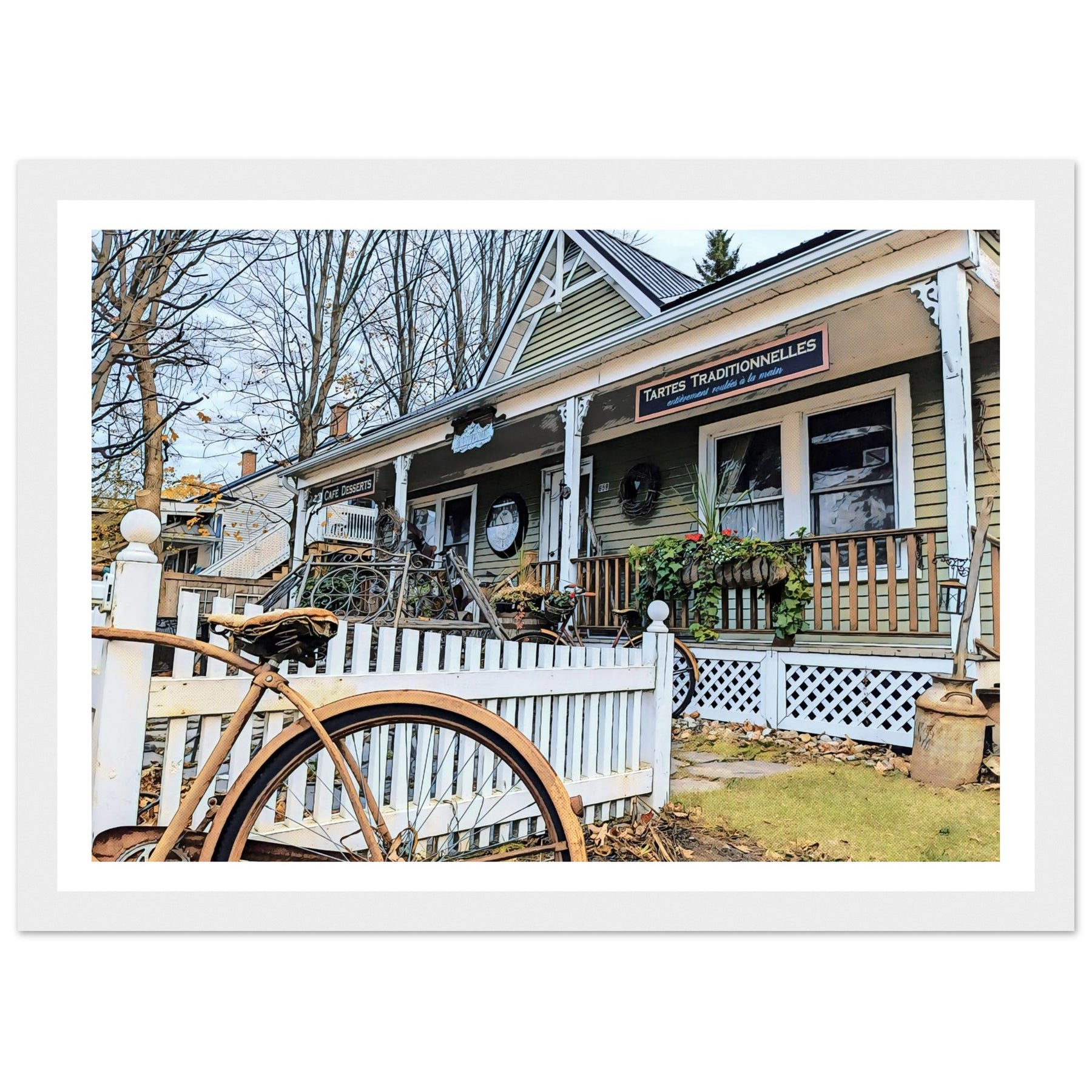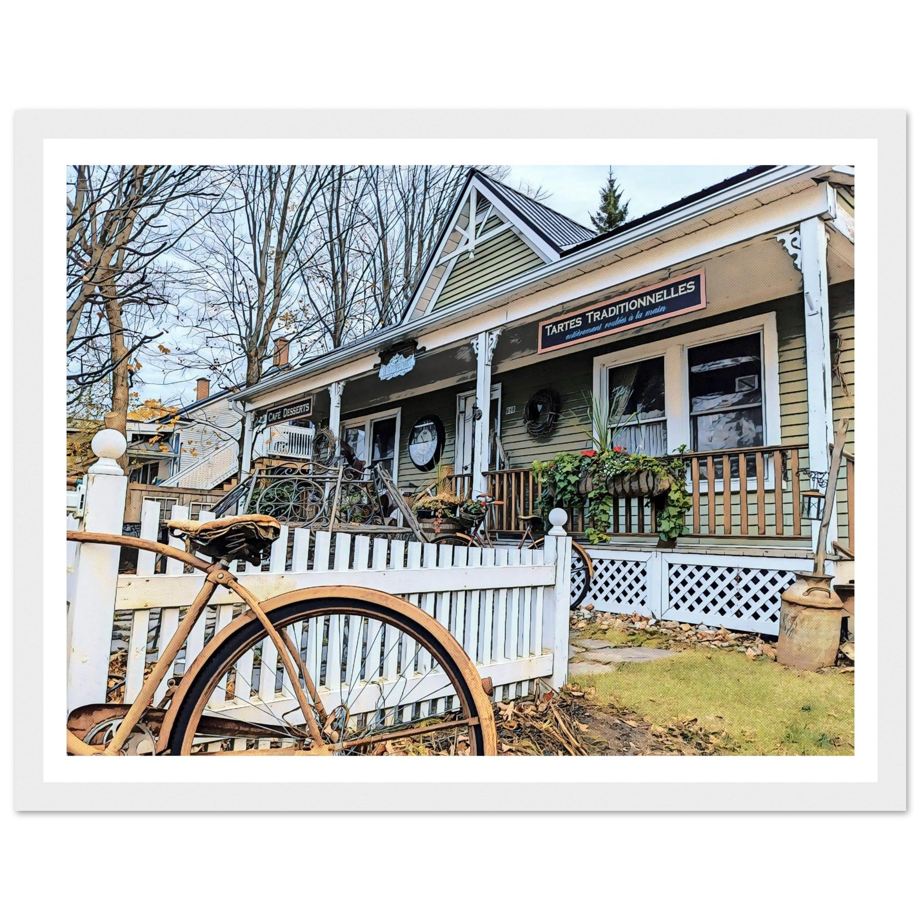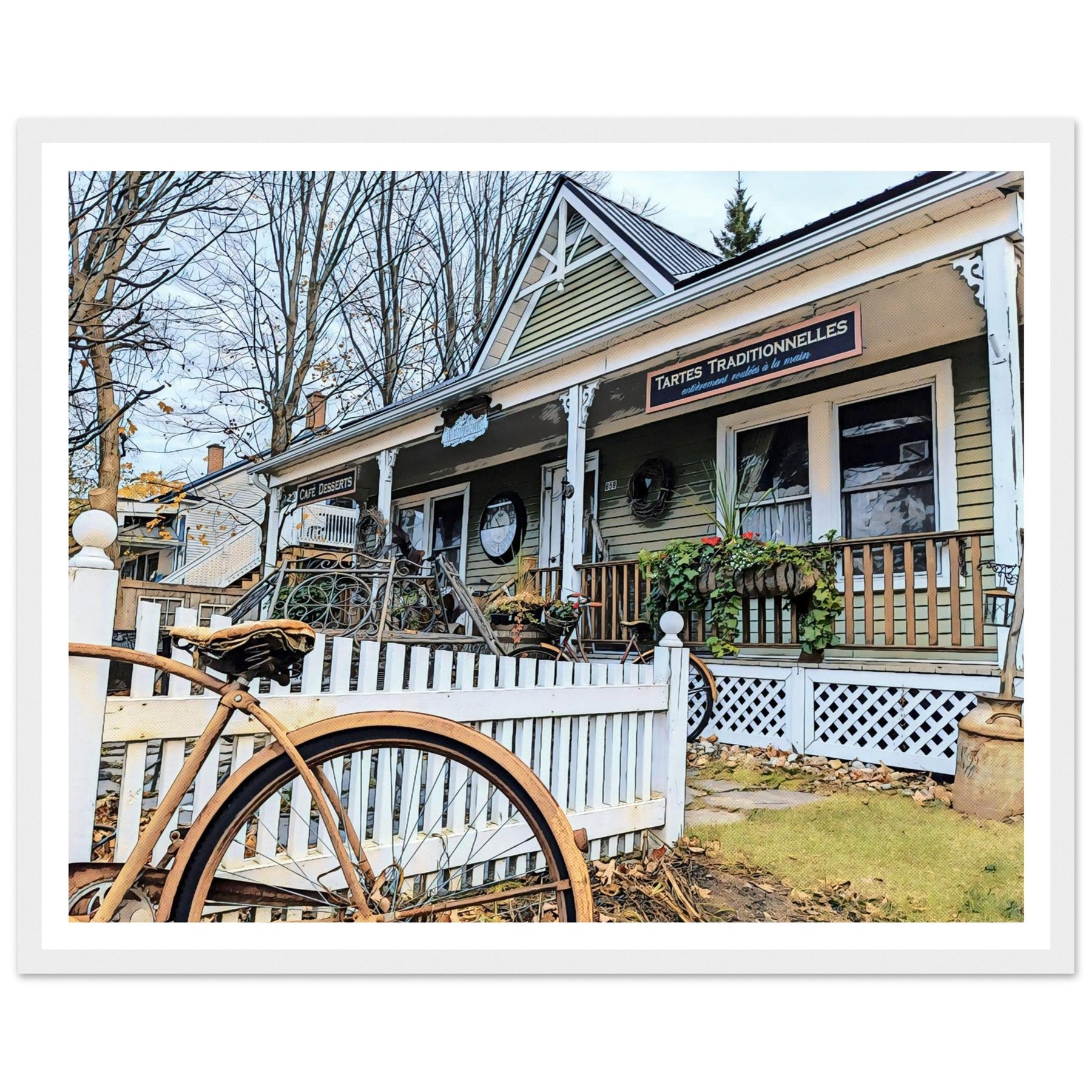 Charming Bakery Scene with Antique Bicycle in Bromont by Studio Shefford - Photo Art Composition wall art print