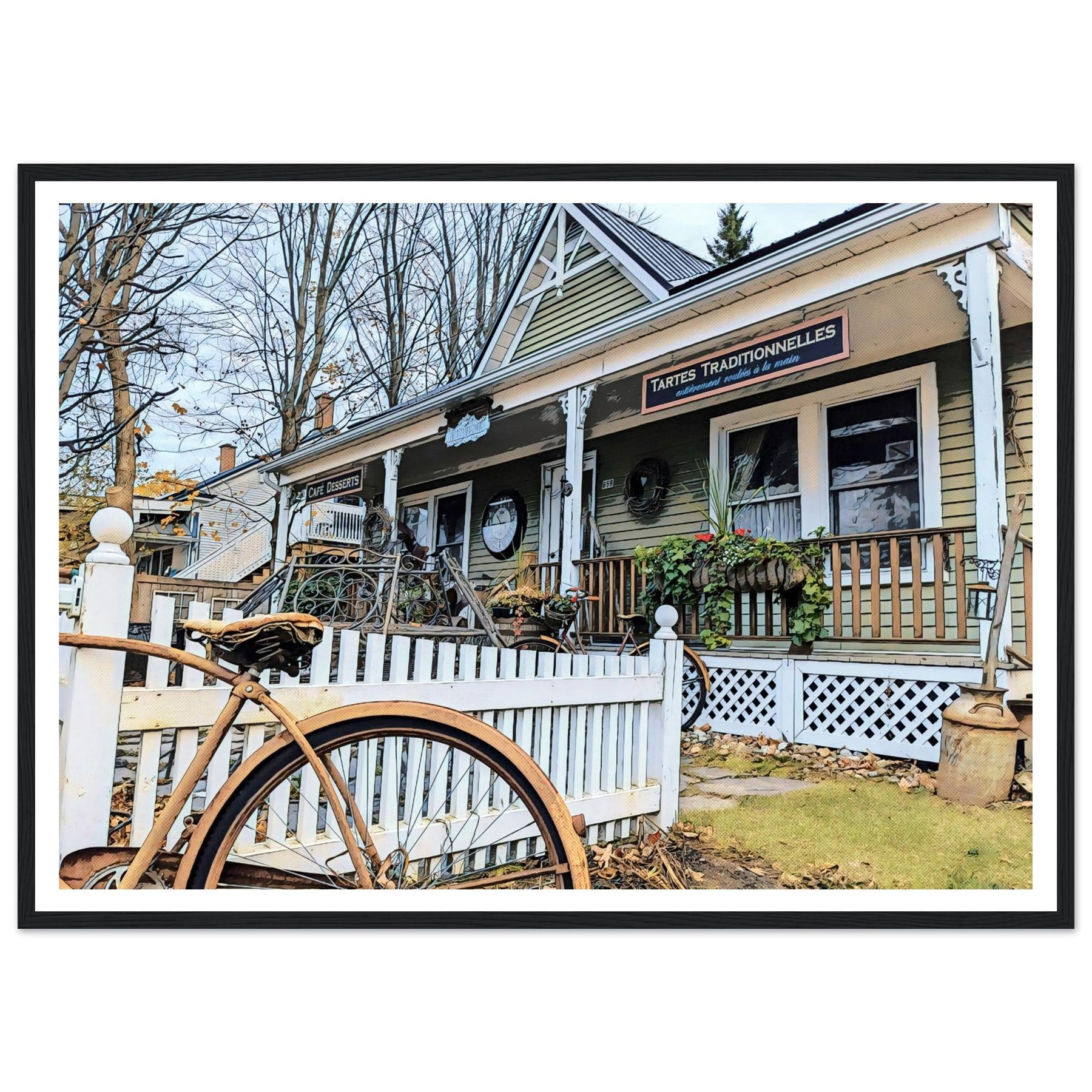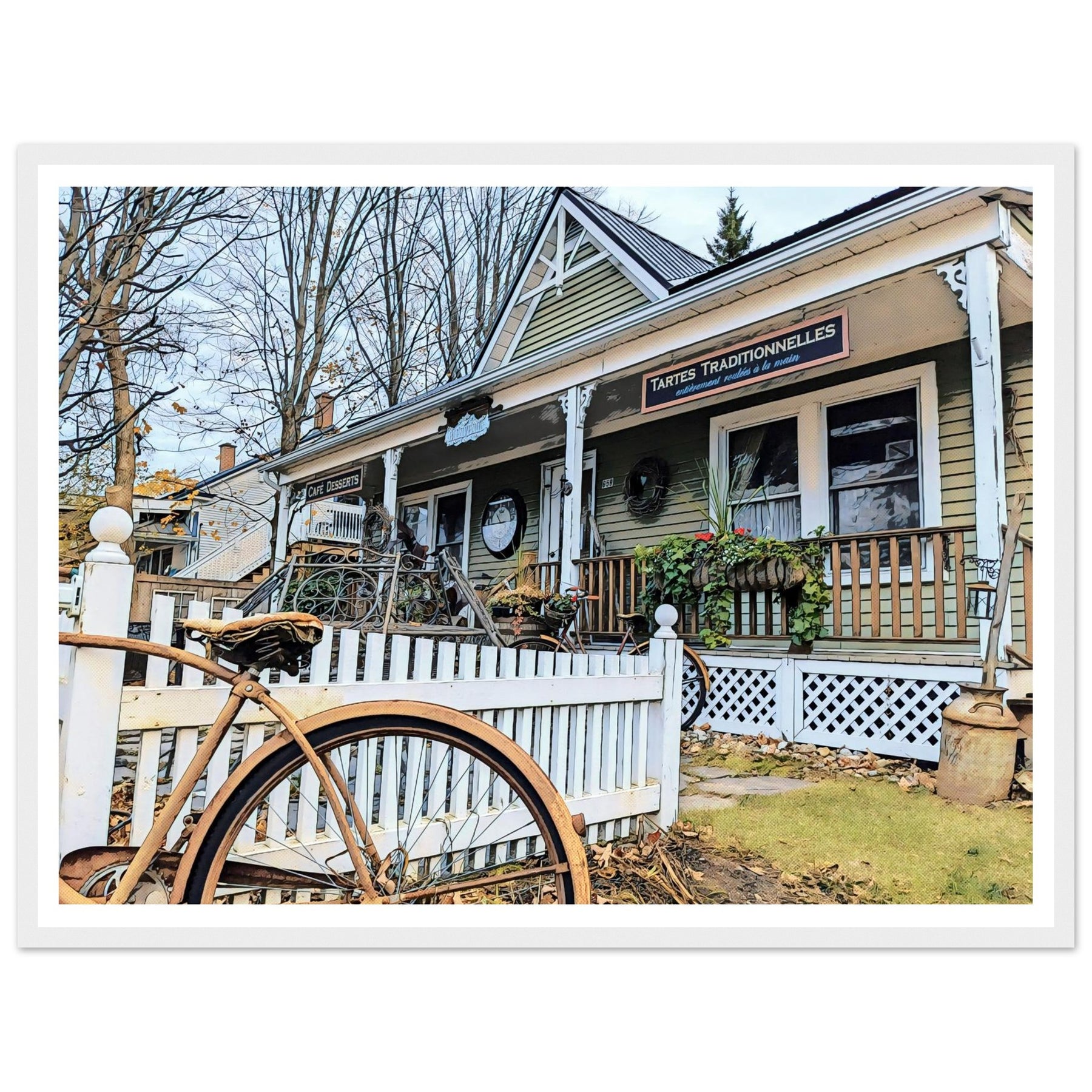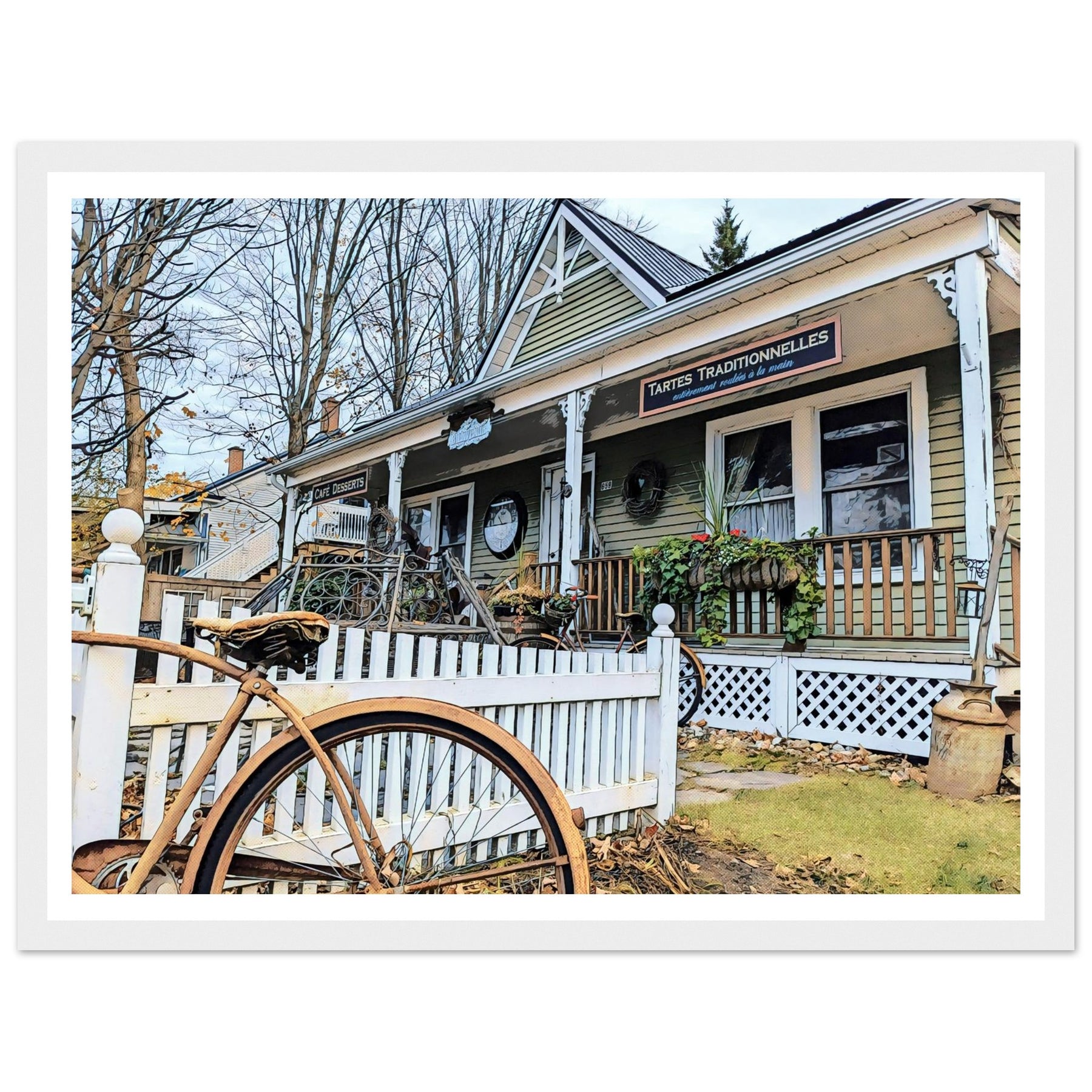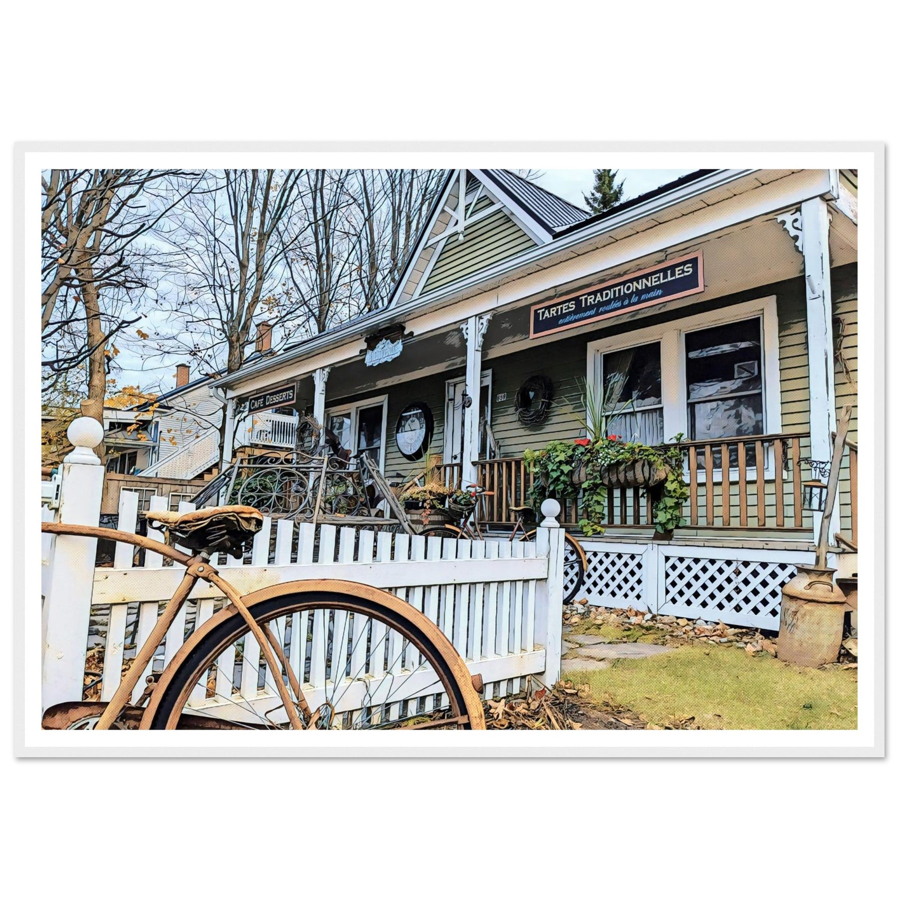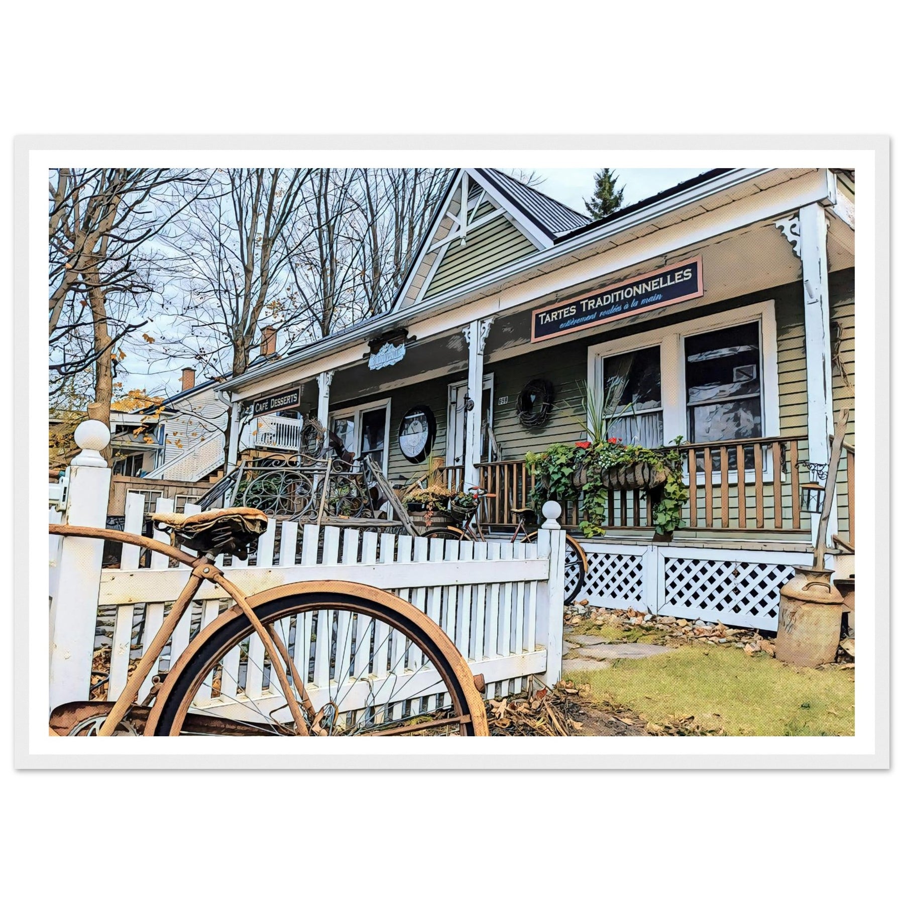 Charming Bakery Scene with Antique Bicycle in Bromont by Studio Shefford - Photo Art Composition wall art print