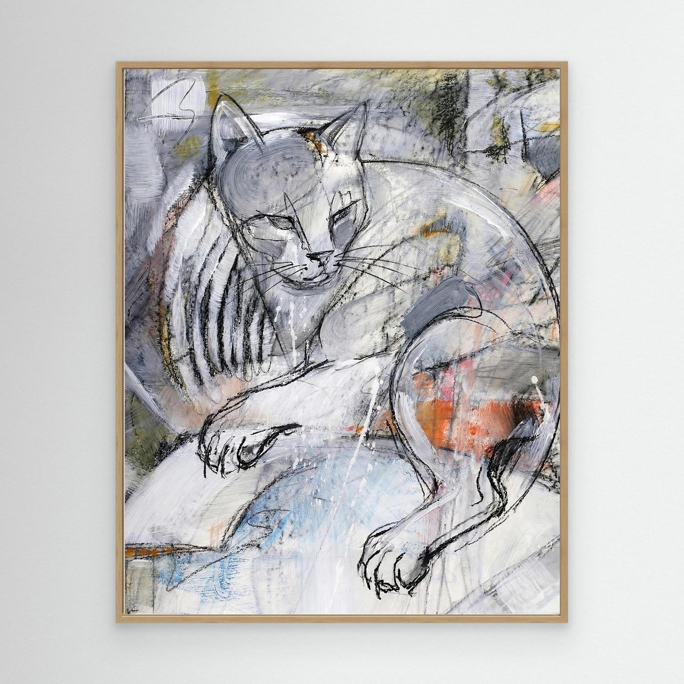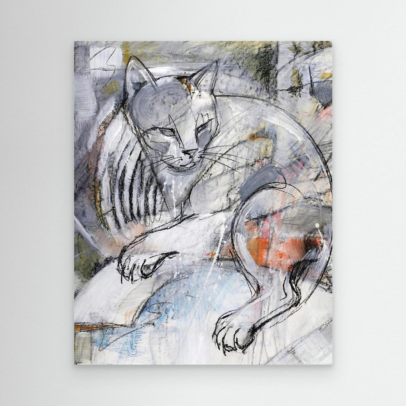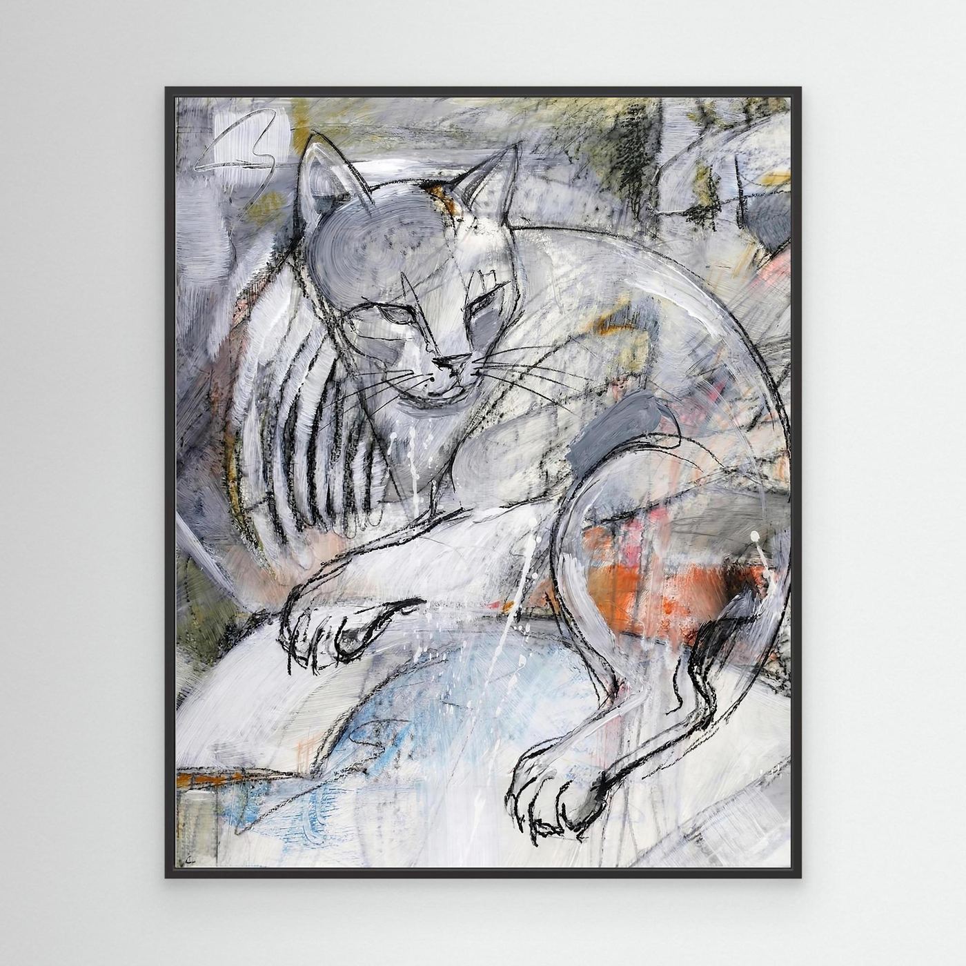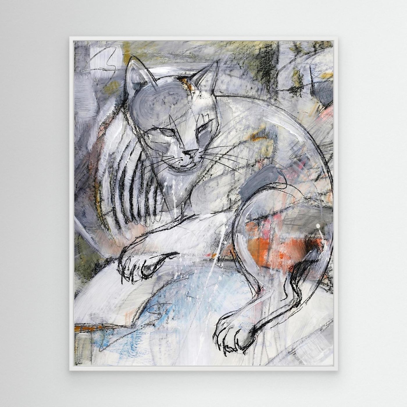 Modern Expressionist Grey Cat Sketch Wall Art Print - Canvas Framed Options