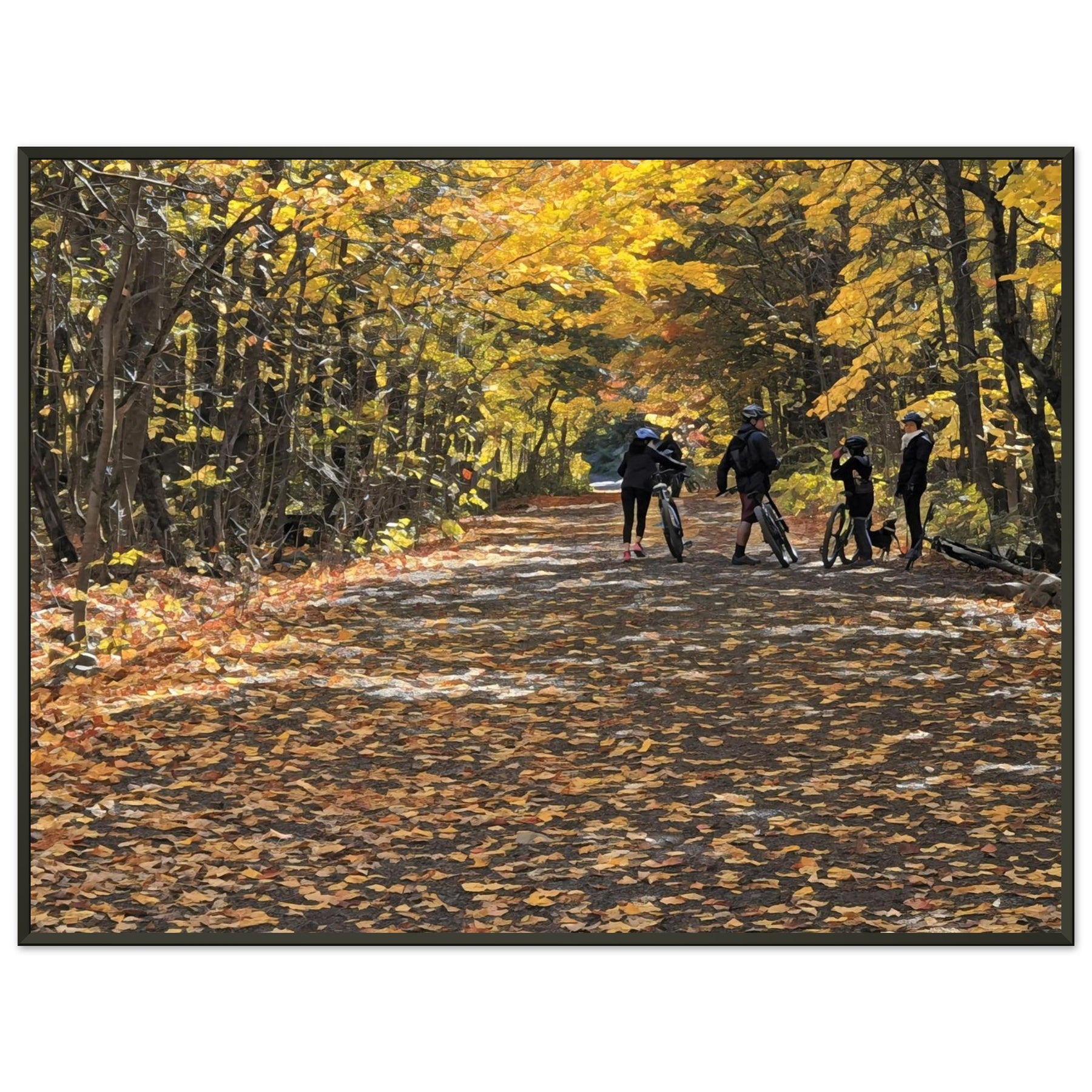 Immerse yourself in the beauty of autumn with this vibrant wall art depicting a biking adventure amid golden leaves on Mont Oak in Bromont. Ideal for nature lovers and avid bikers, this artwork creates a joyful, serene atmosphere in any space. Perfect for living rooms, offices, or recreation areas, this piece invites warmth and connection to nature.