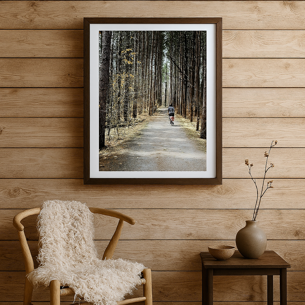 "The Way Ahead" Biking in the Woods - Premium Matte Framed Art Print