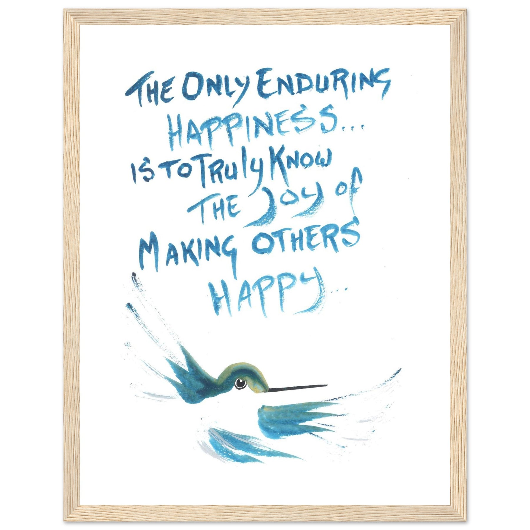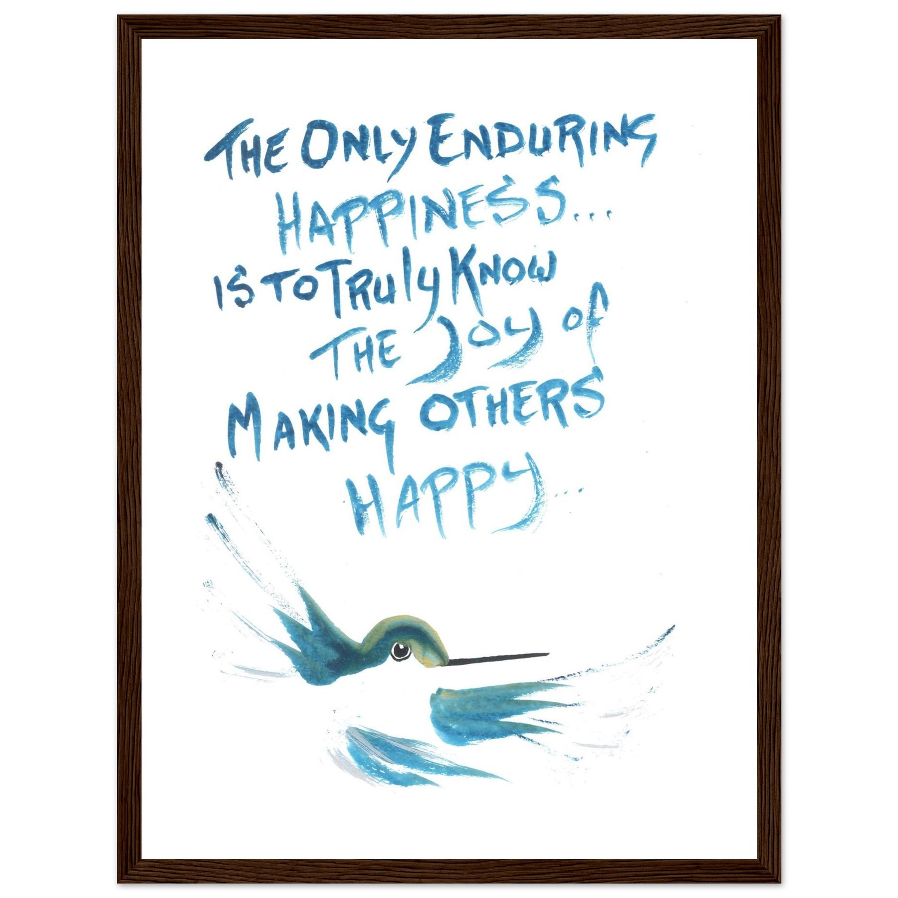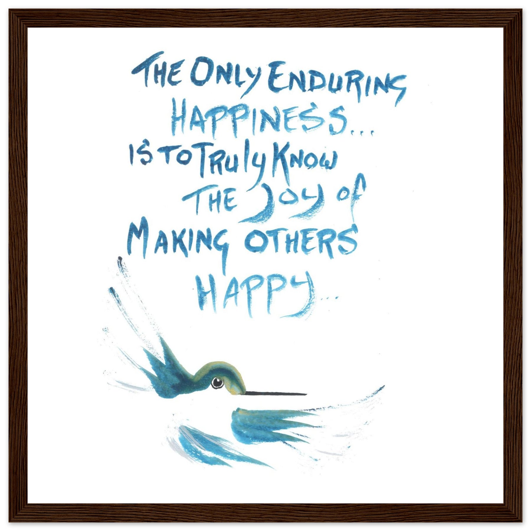 “Own a piece of the street — wisdom painted in watercolor.” Transform your space with this enchanting watercolor artwork featuring a delightful hummingbird and a heartwarming quote on happiness. This piece not only enhances the aesthetic of your environment but also serves as a daily reminder of the joy found in making others happy. Ideal for living rooms, bedrooms, offices, or any space that needs a touch of positivity. — The Wandering Artist Collection by Bromont Media
