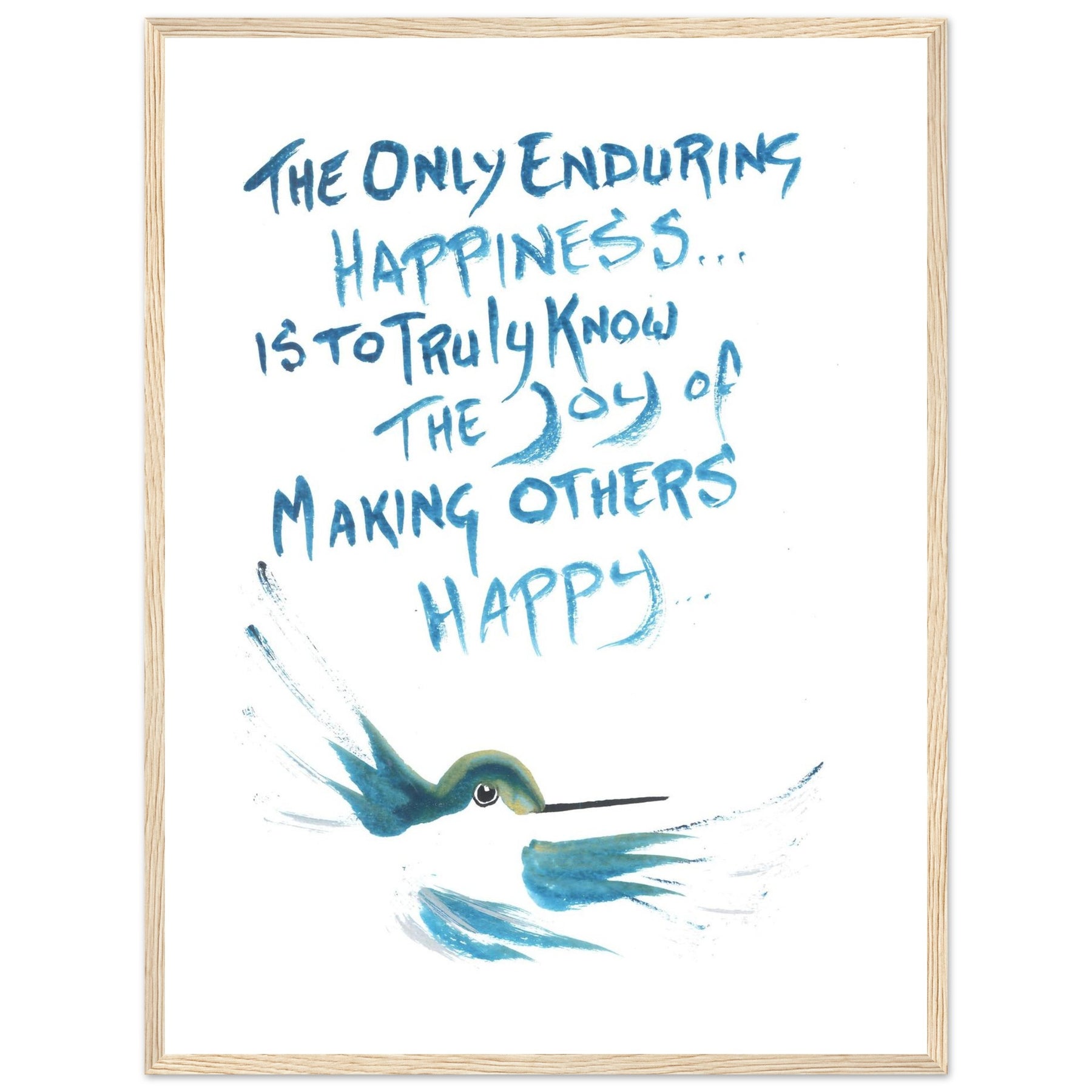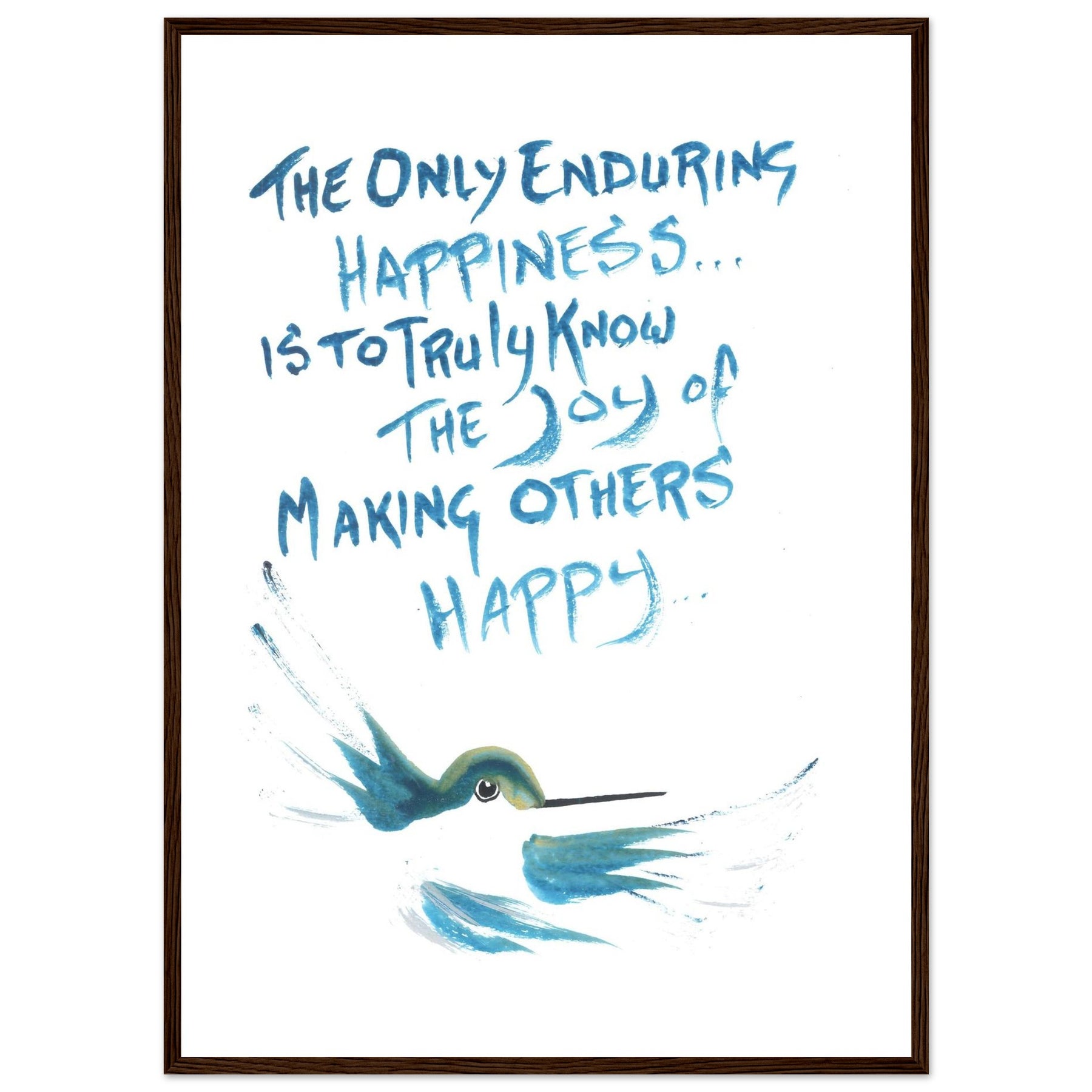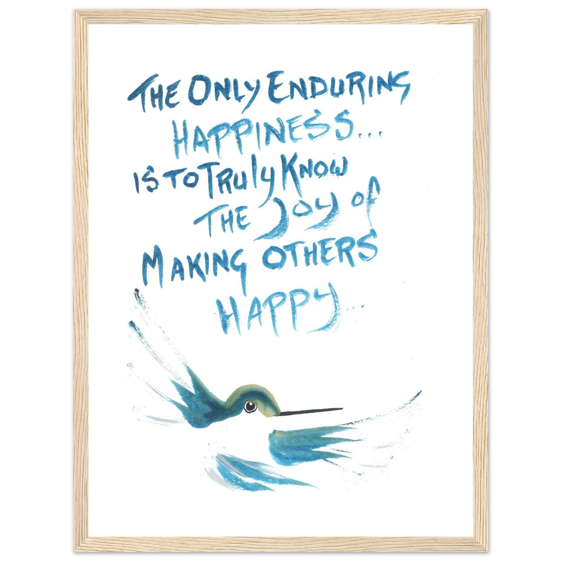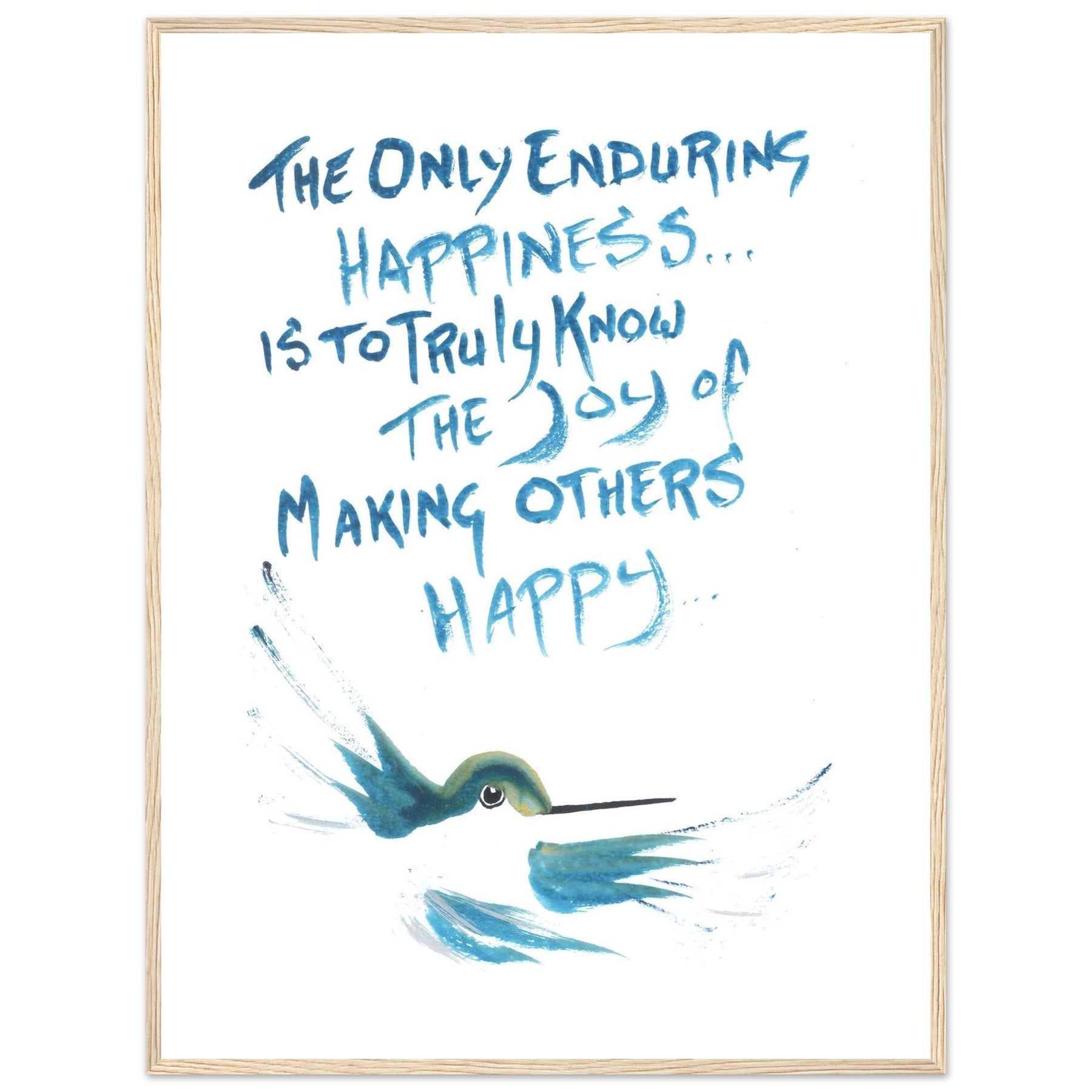 “Own a piece of the street — wisdom painted in watercolor.” Transform your space with this enchanting watercolor artwork featuring a delightful hummingbird and a heartwarming quote on happiness. This piece not only enhances the aesthetic of your environment but also serves as a daily reminder of the joy found in making others happy. Ideal for living rooms, bedrooms, offices, or any space that needs a touch of positivity. — The Wandering Artist Collection by Bromont Media