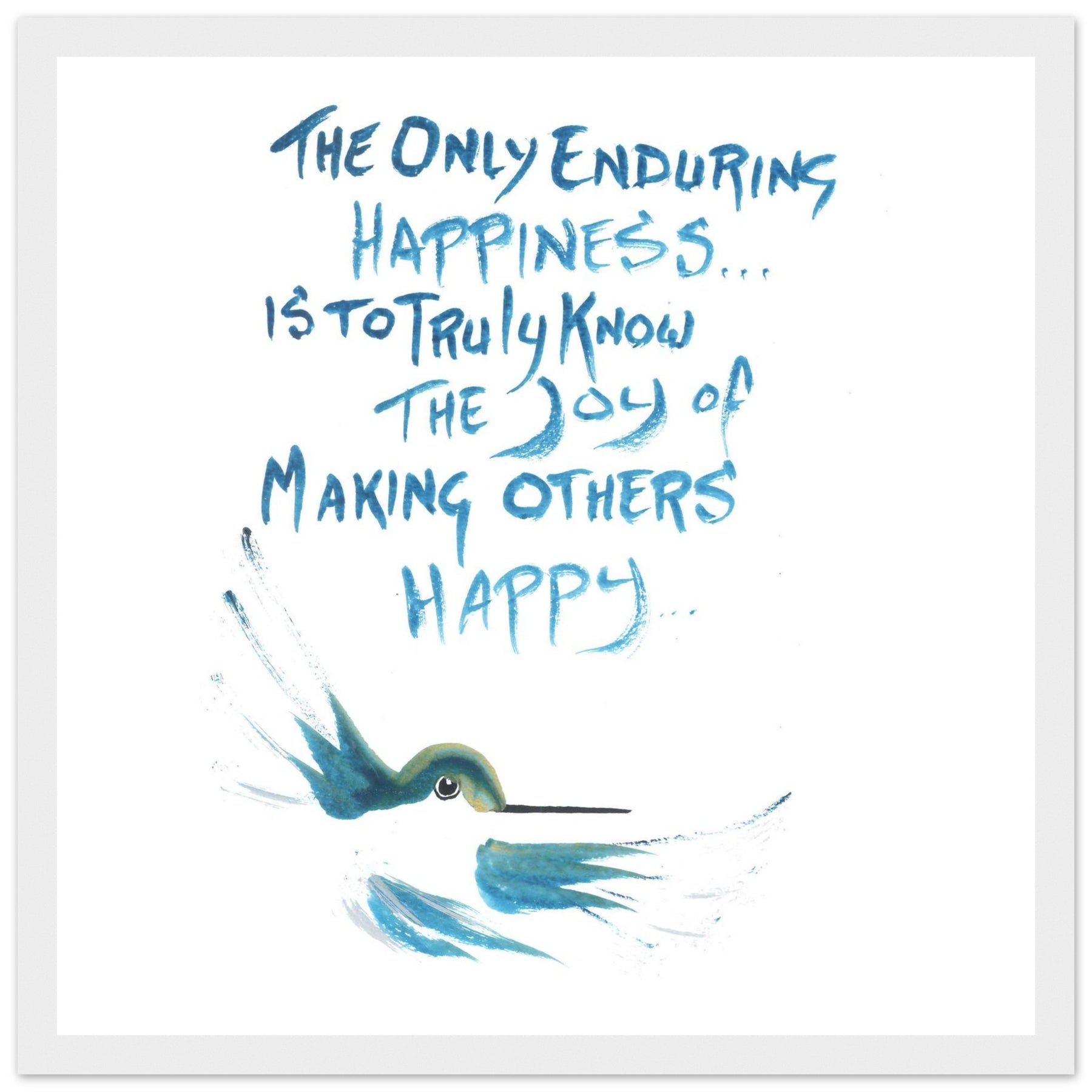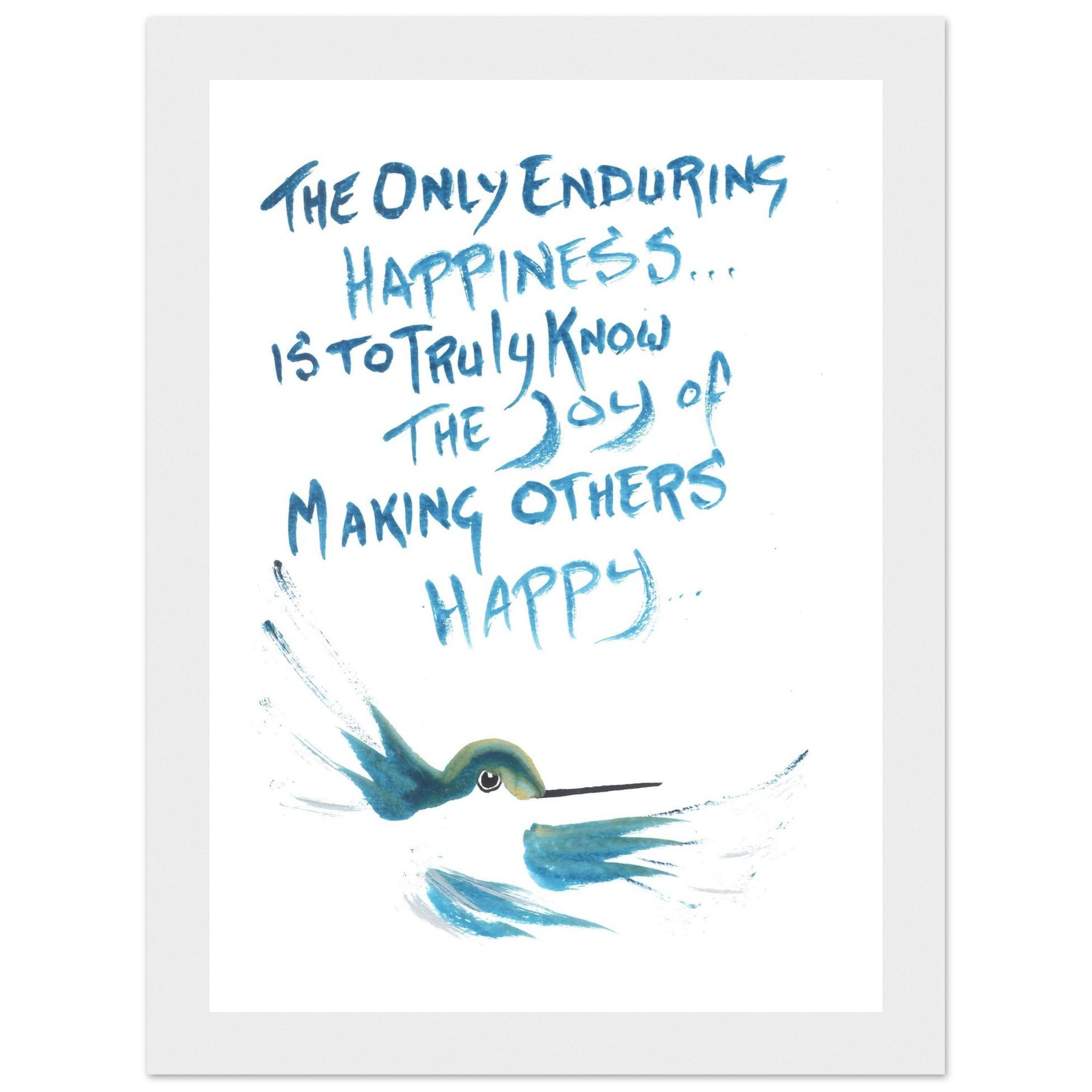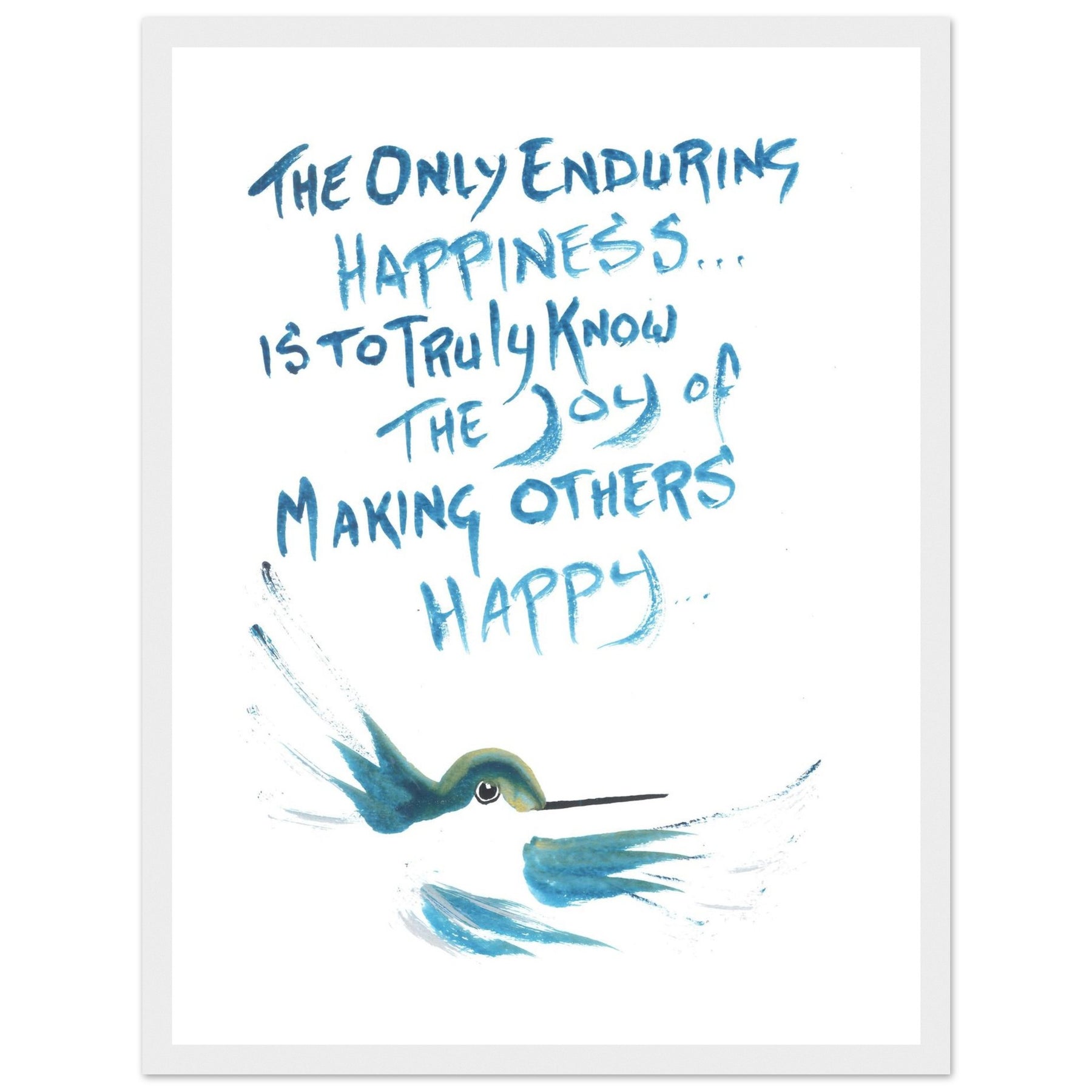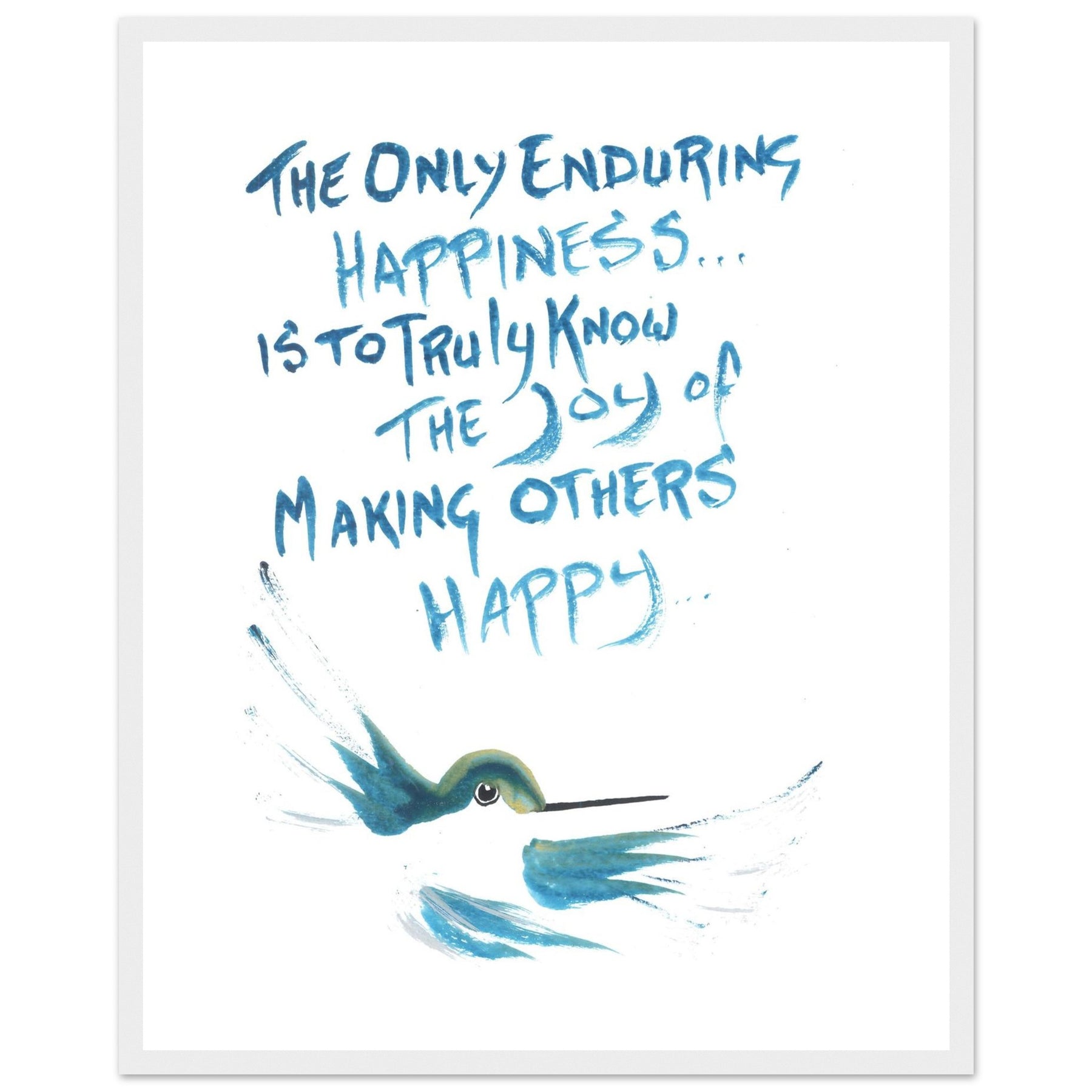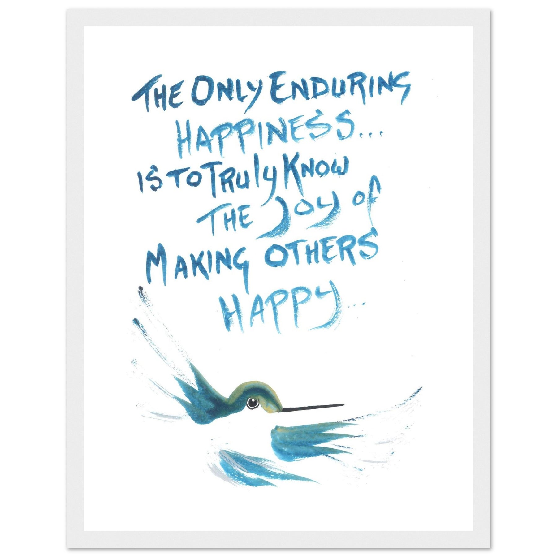"Enduring Happiness" Watercolor Wall Art: Hummingbird Philosophy Series - Premium Matte Framed Art Print