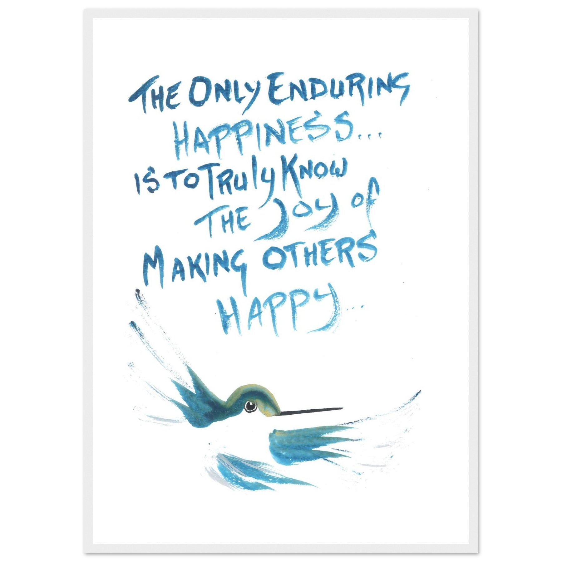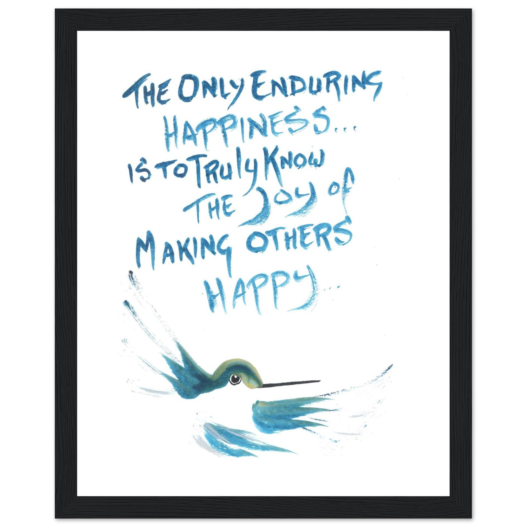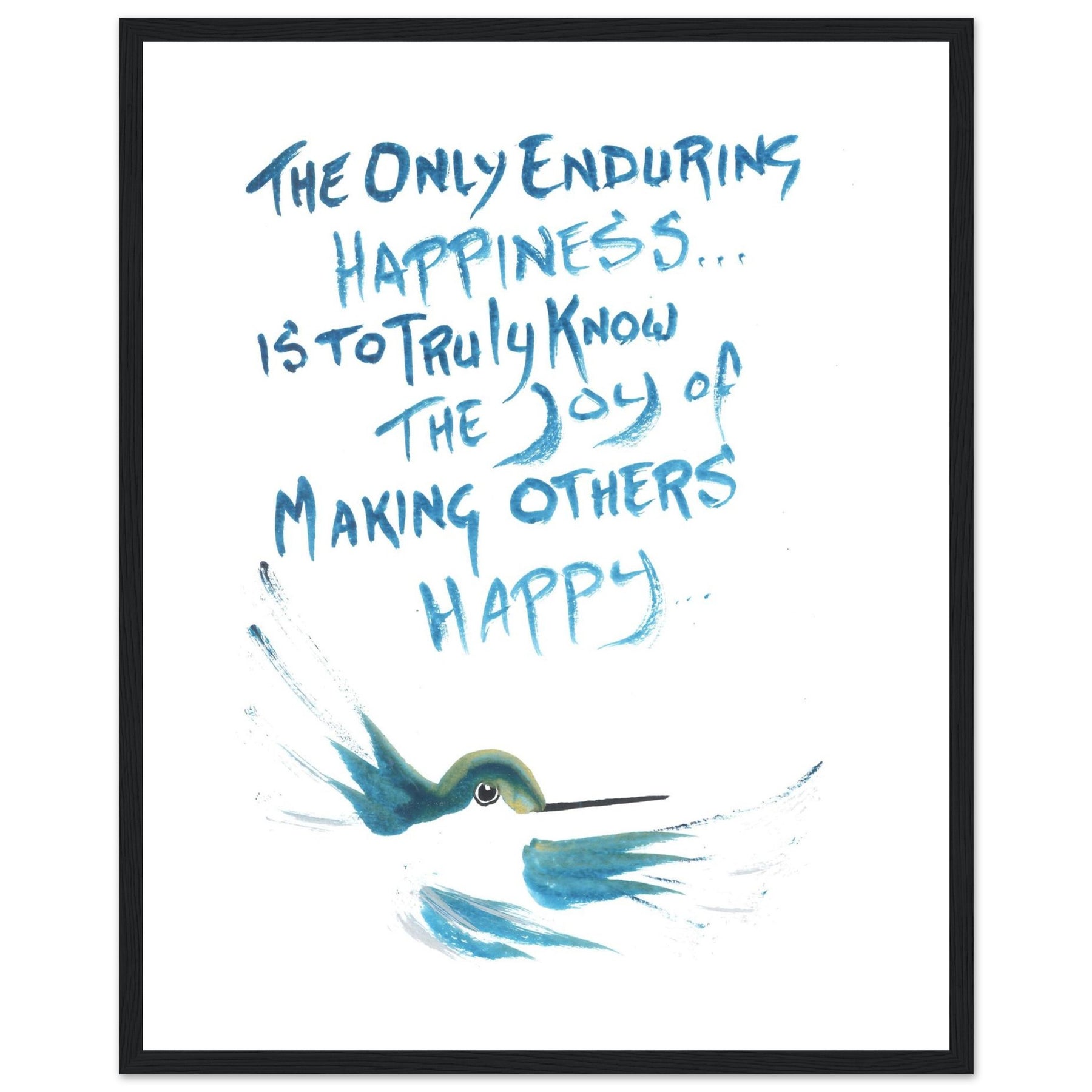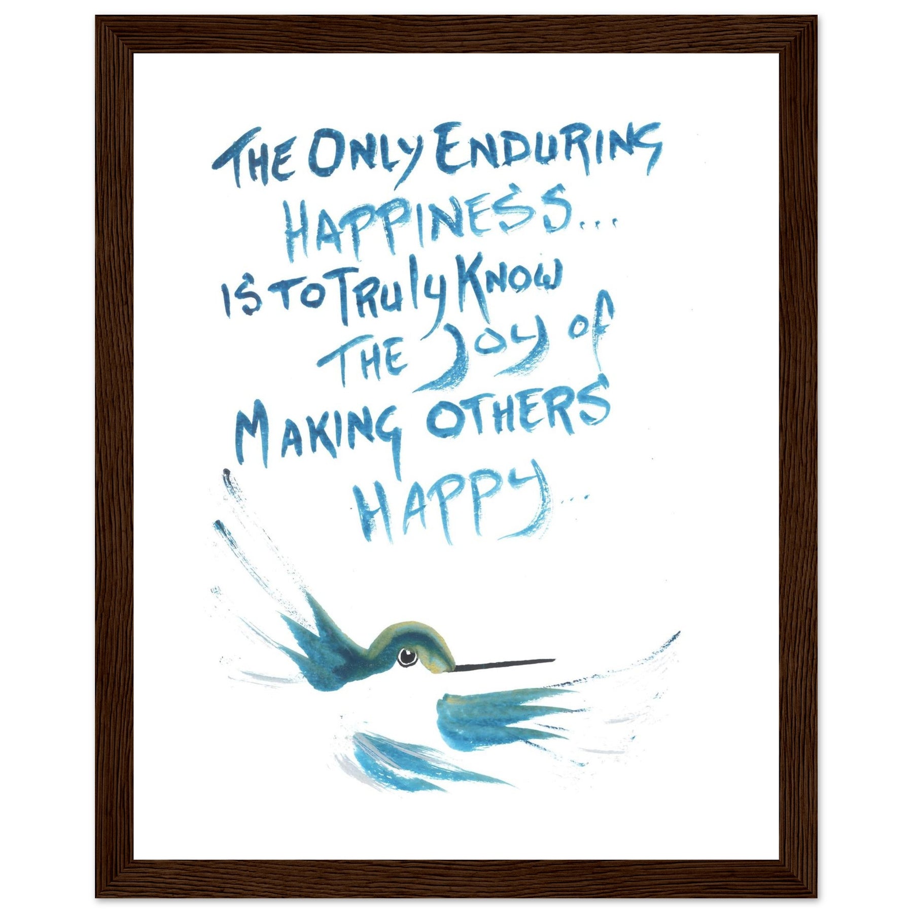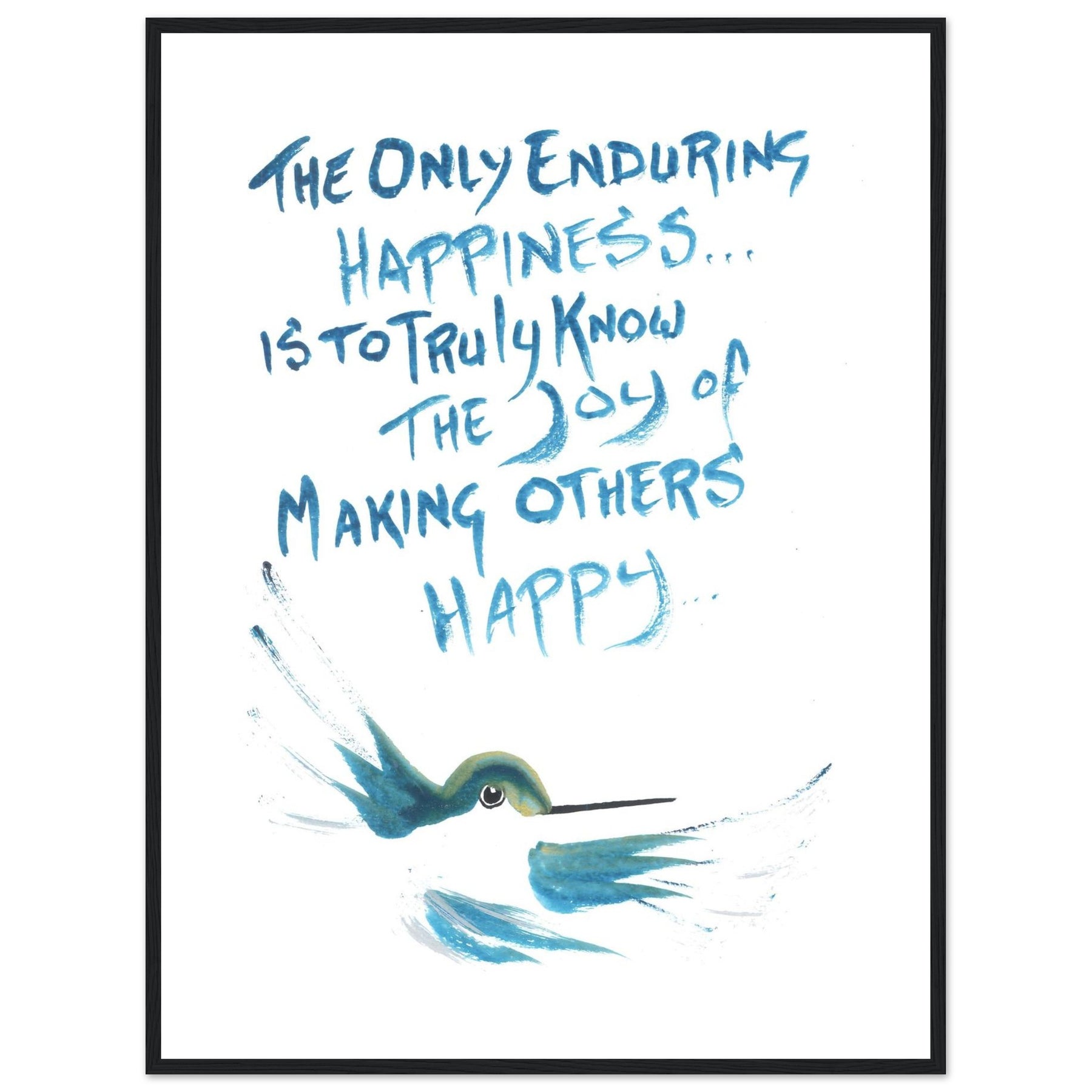 "Enduring Happiness" Watercolor Wall Art: Hummingbird Philosophy Series - Premium Matte Framed Art Print