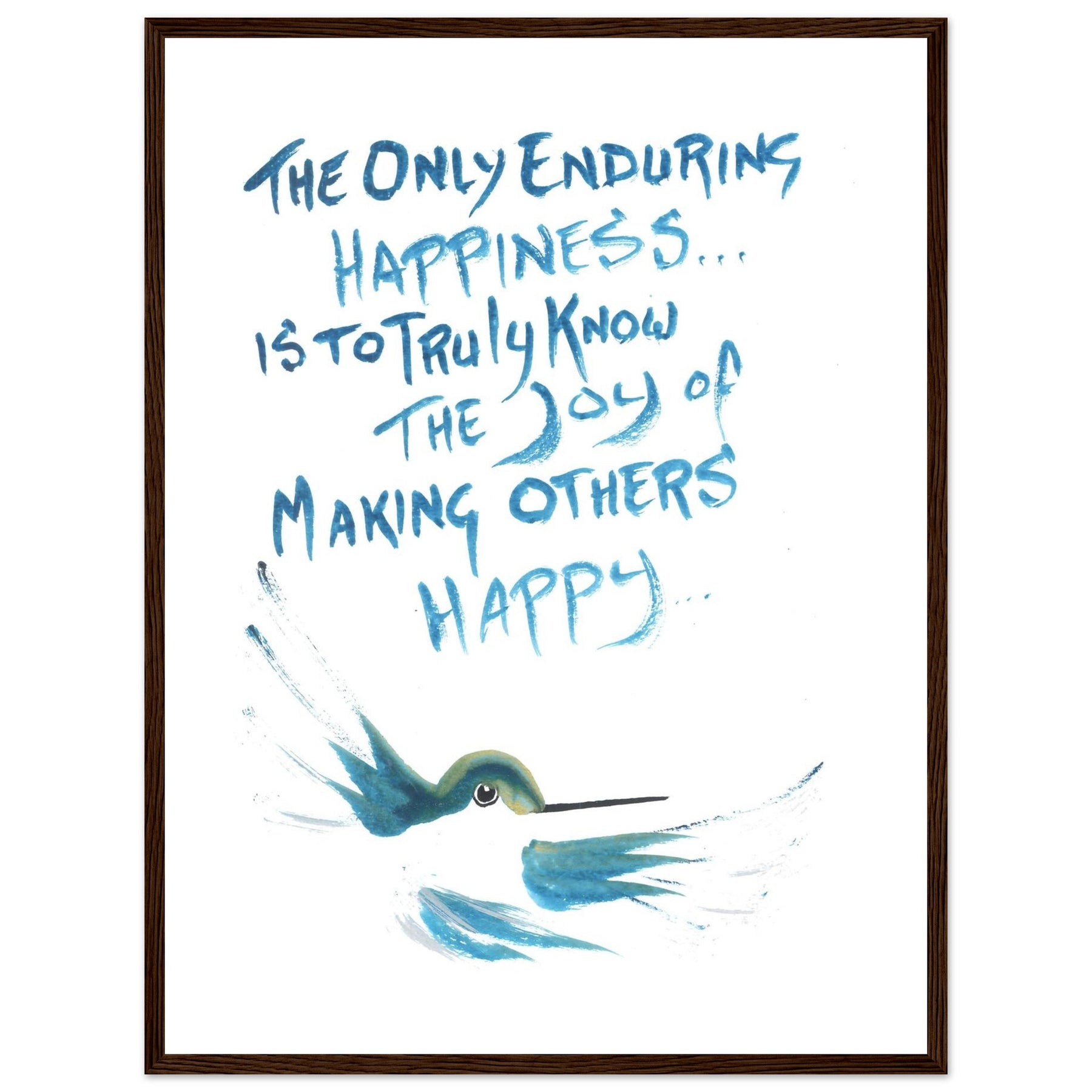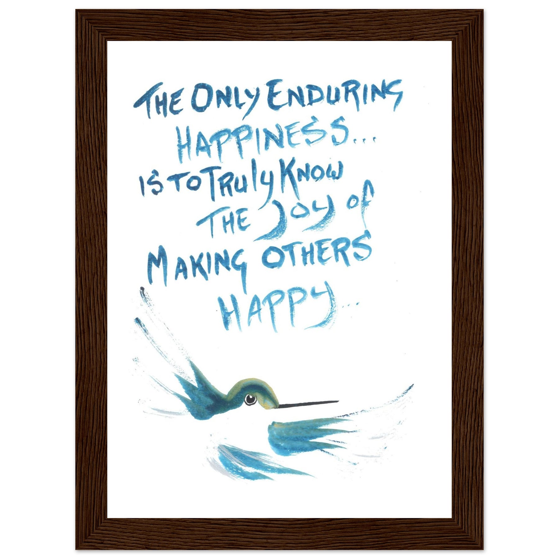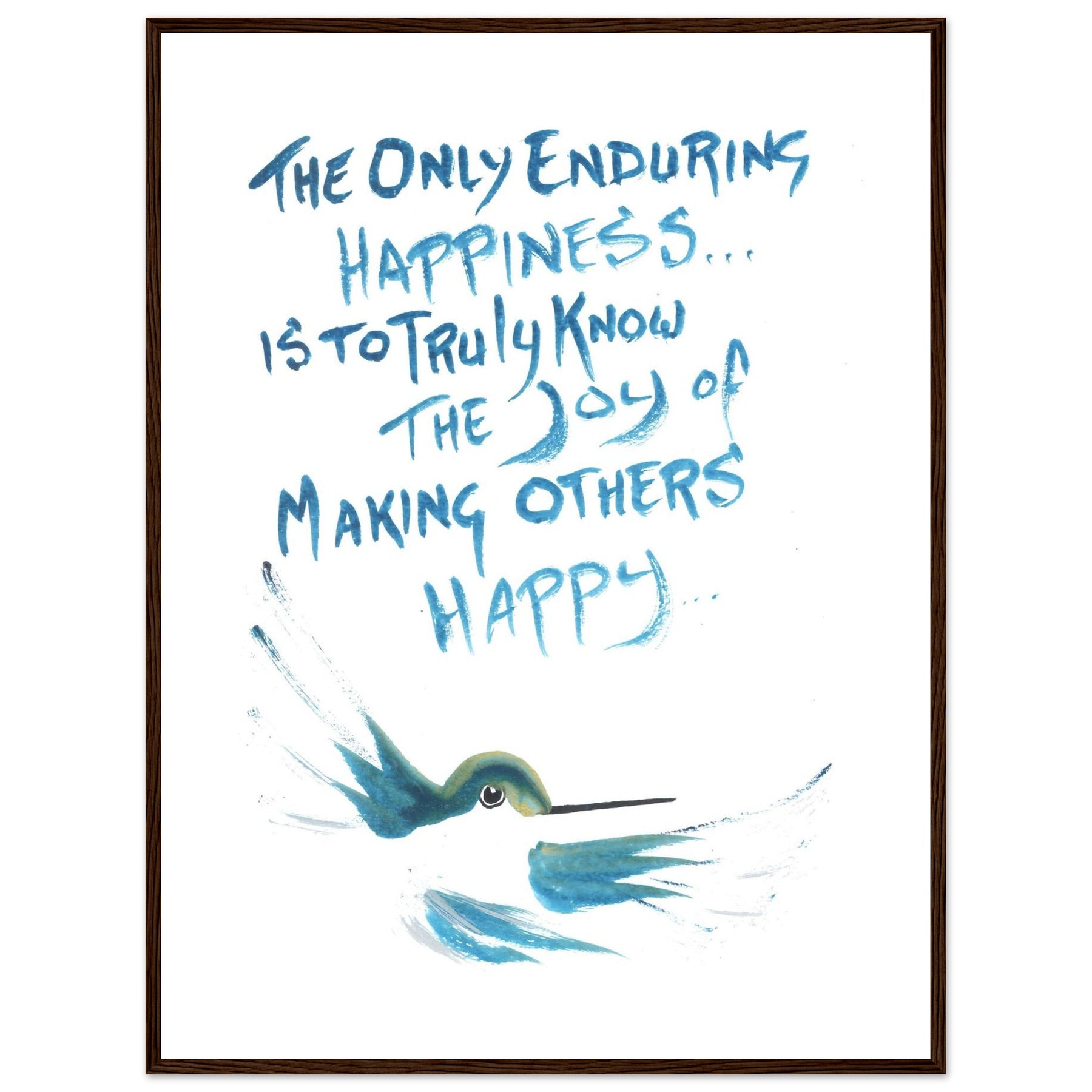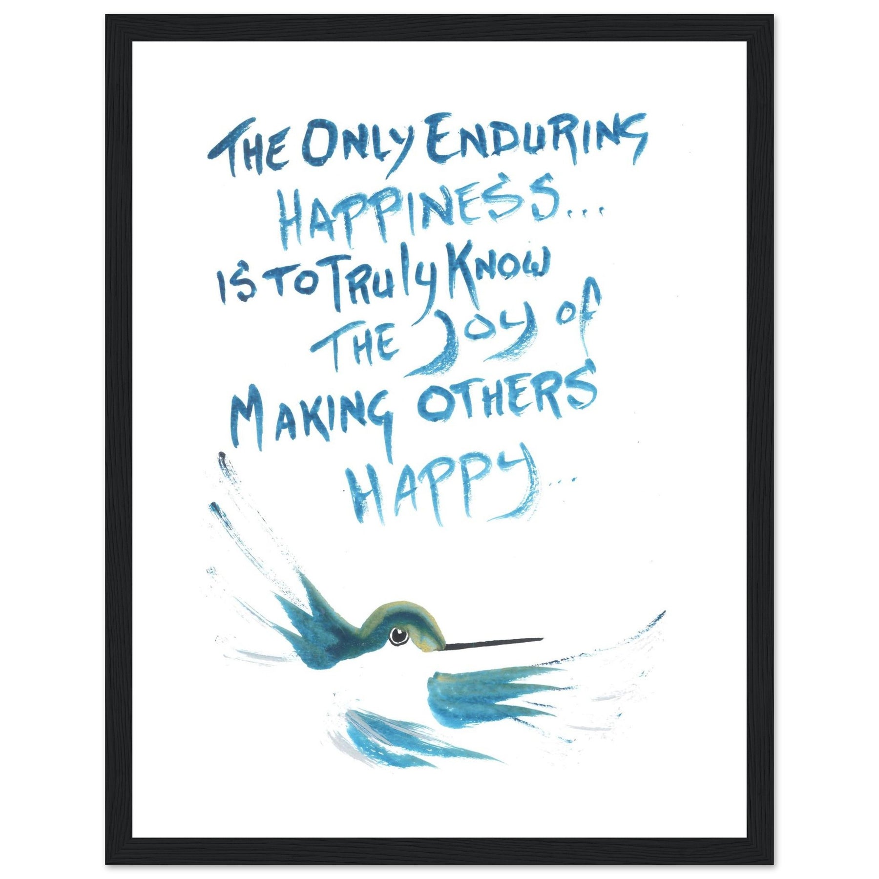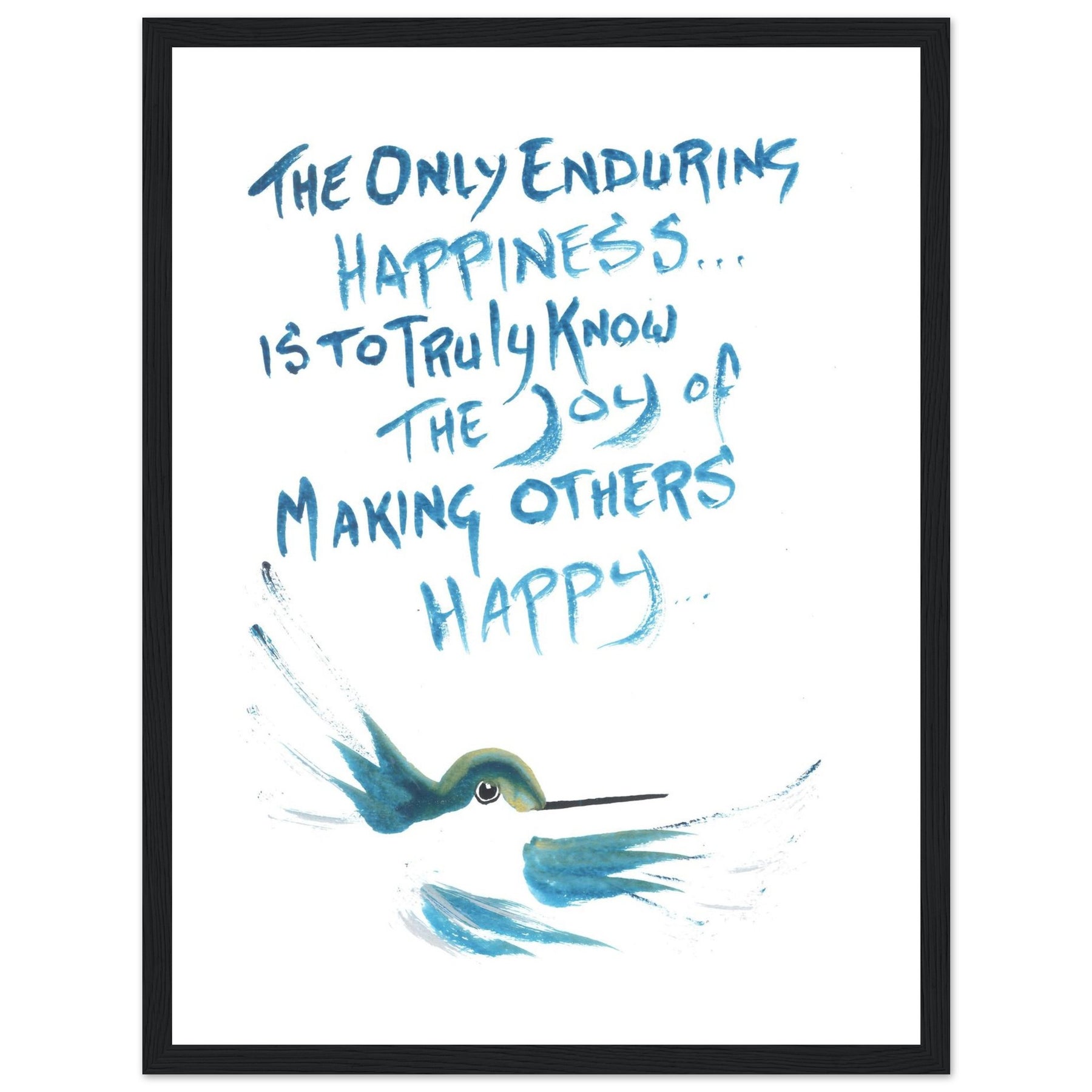 "Enduring Happiness" Watercolor Wall Art: Hummingbird Philosophy Series - Premium Matte Framed Art Print