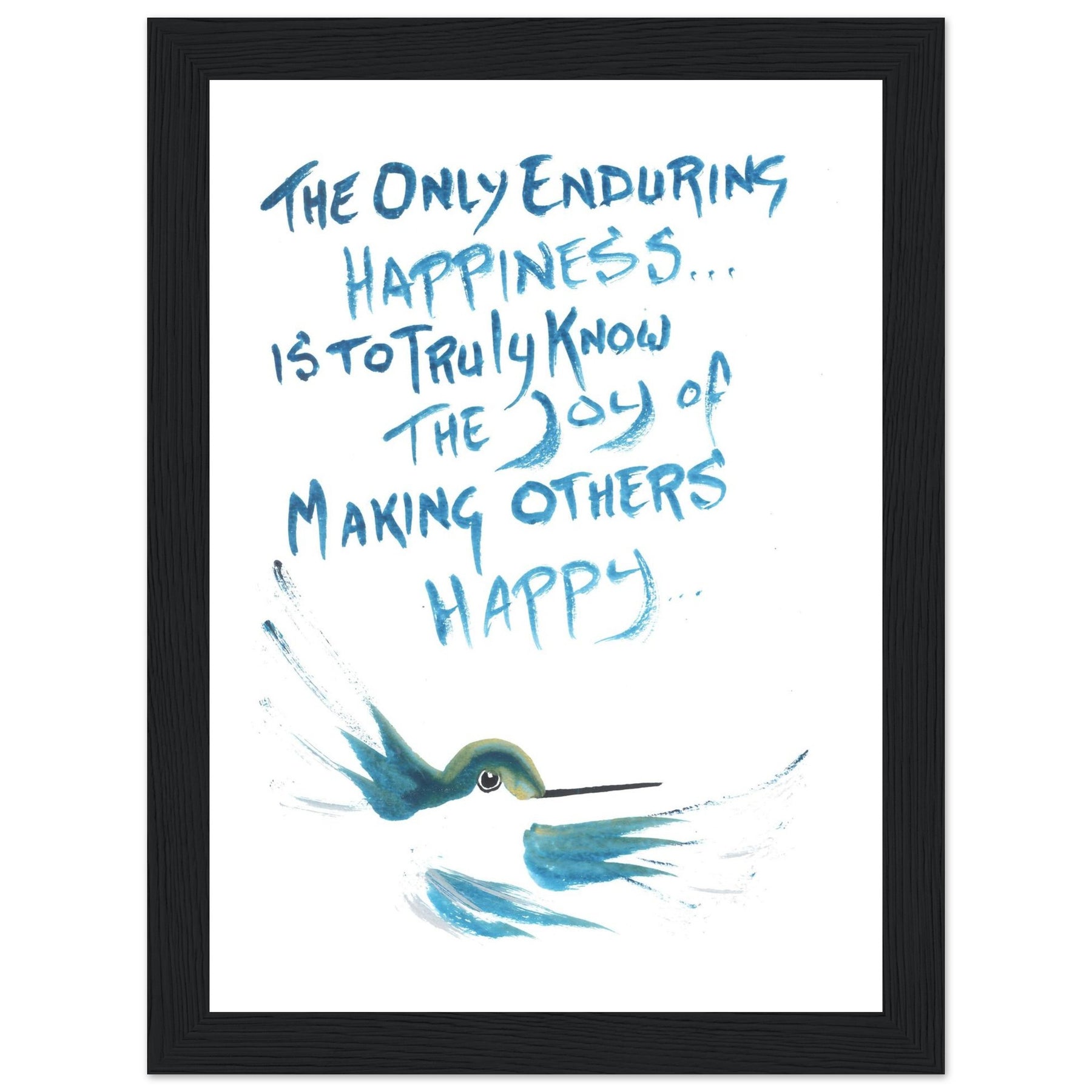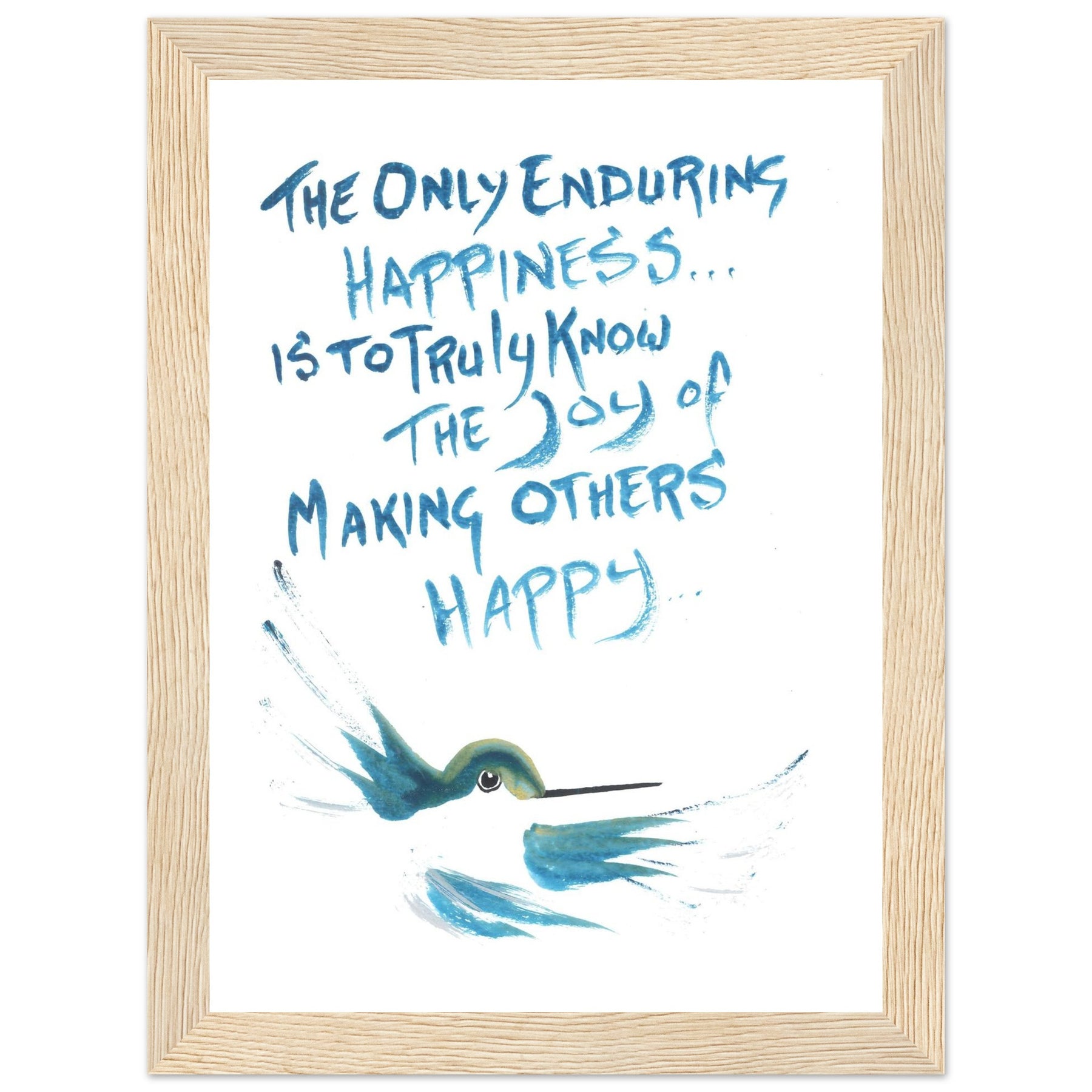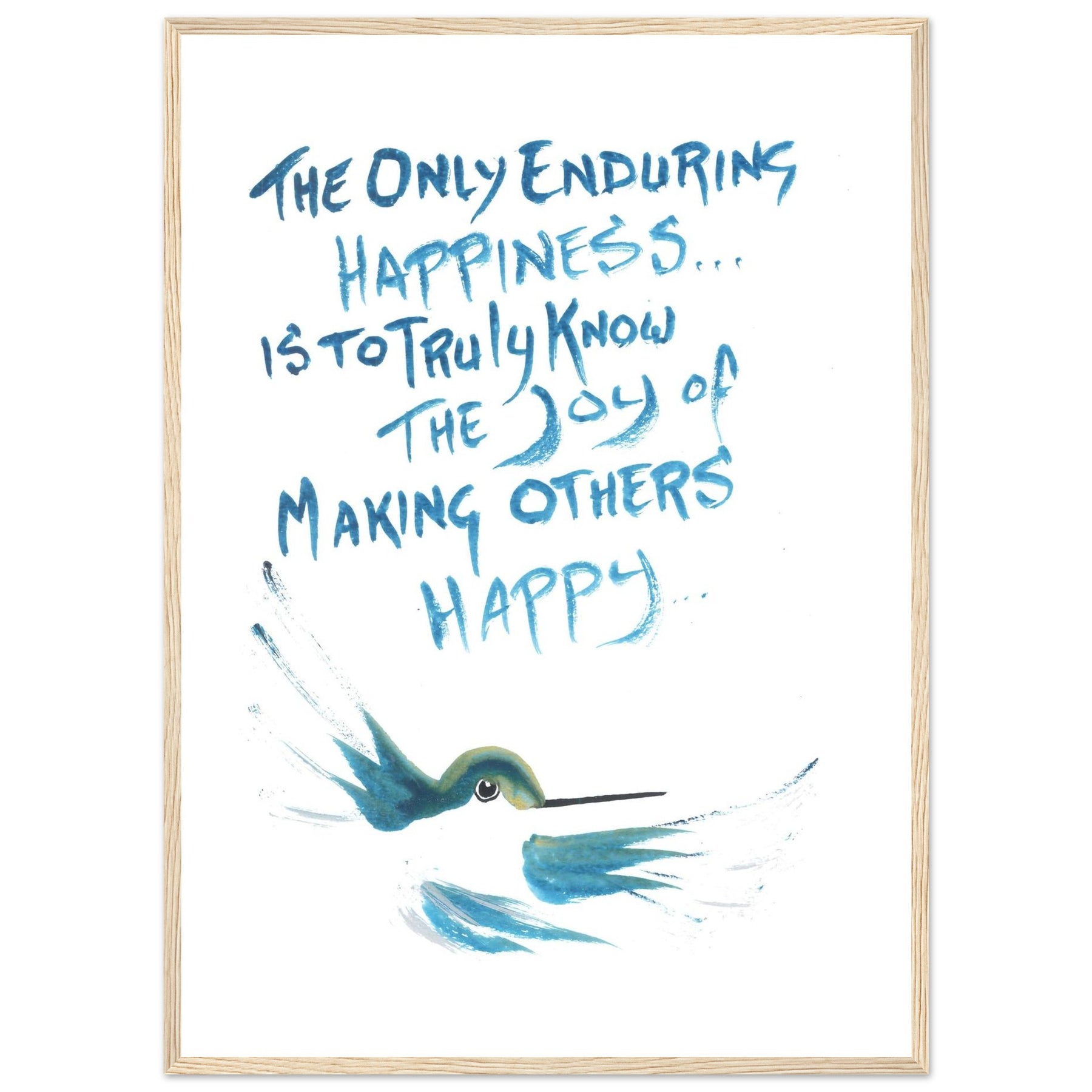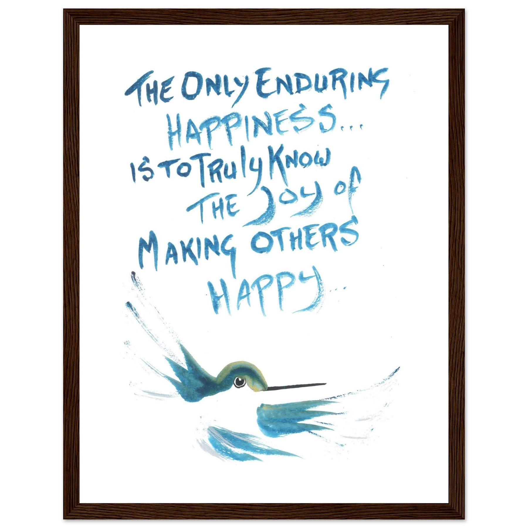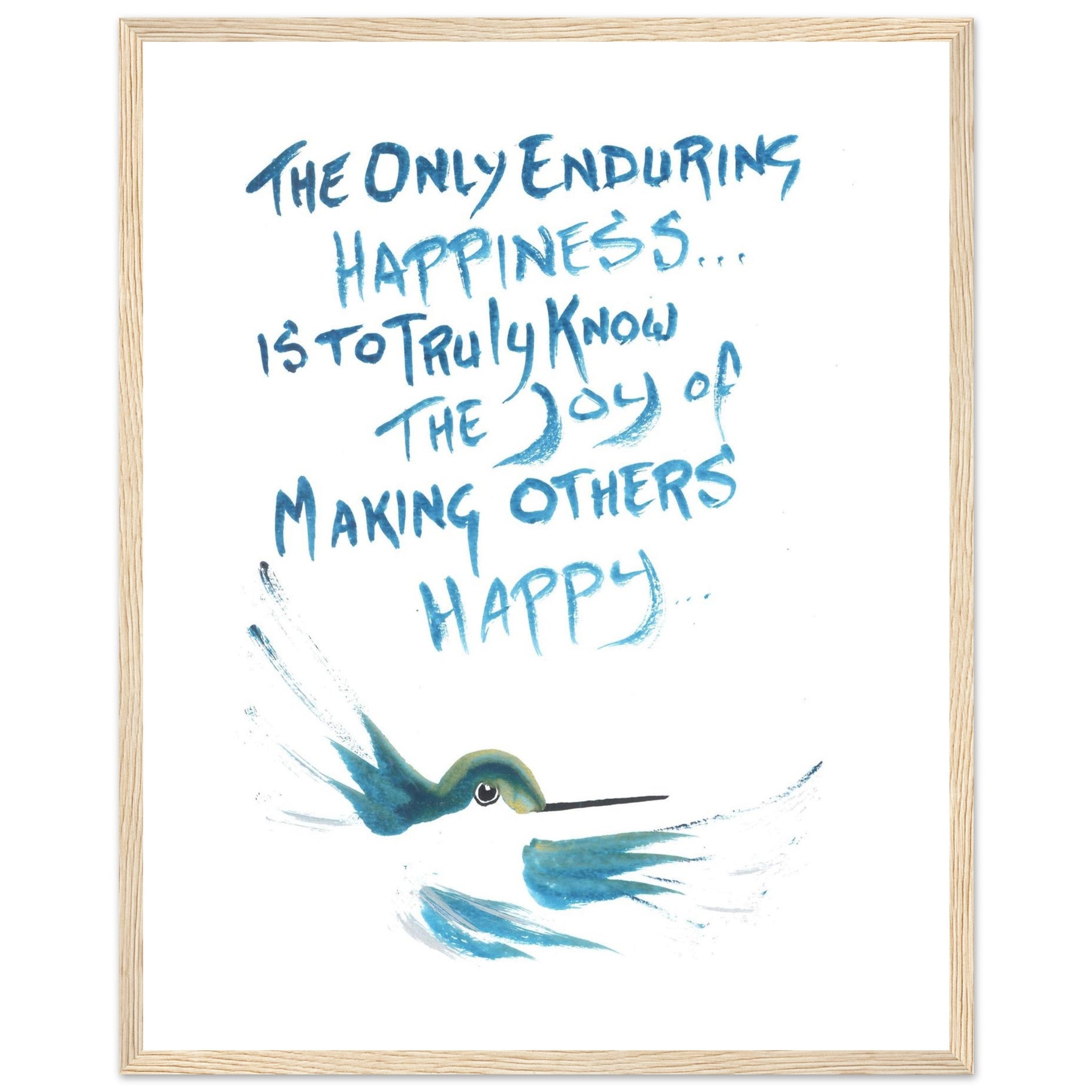 "Enduring Happiness" Watercolor Wall Art: Hummingbird Philosophy Series - Premium Matte Framed Art Print