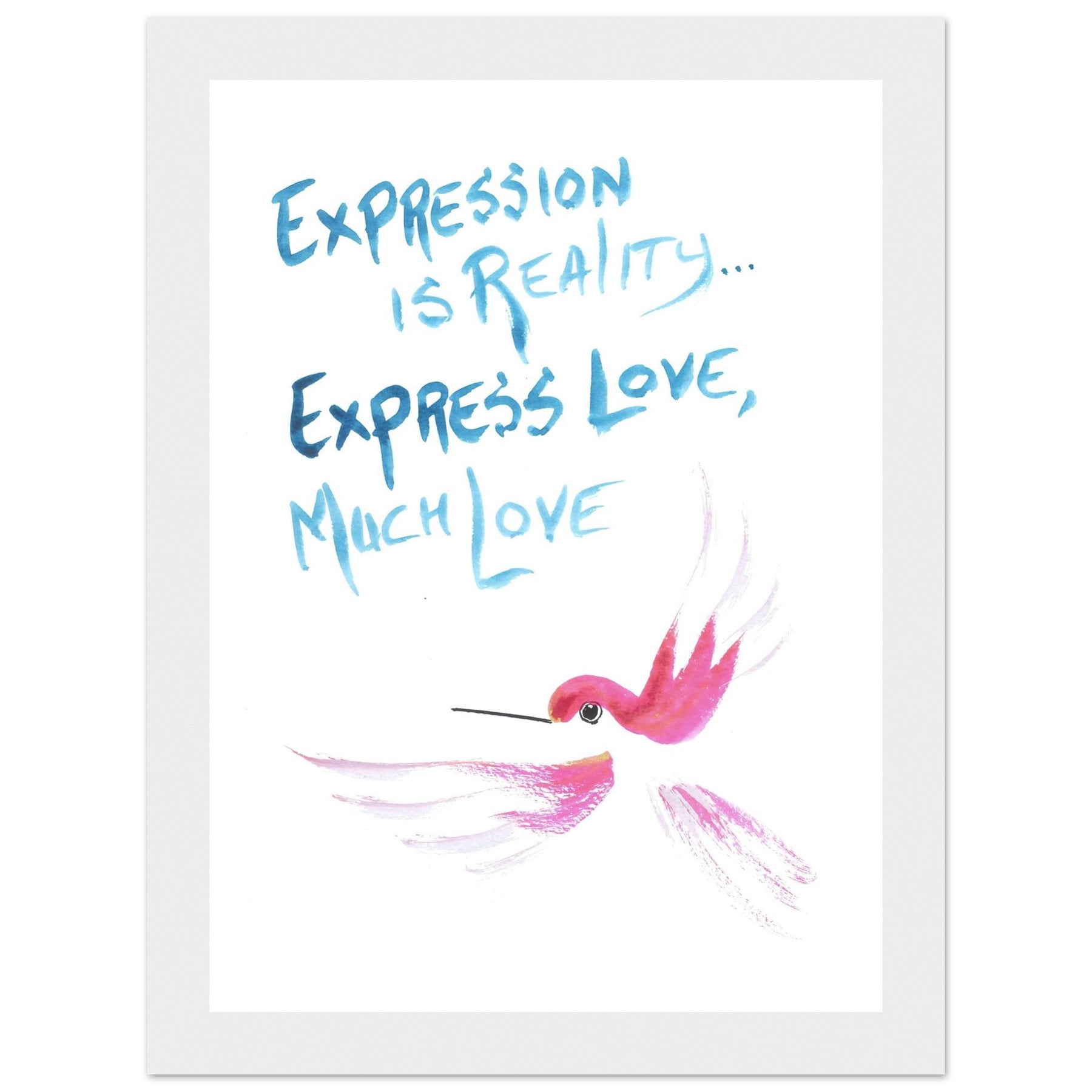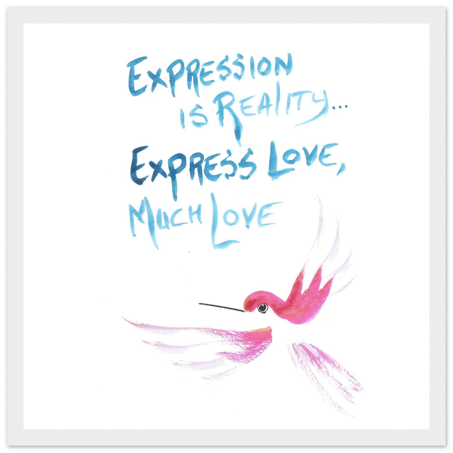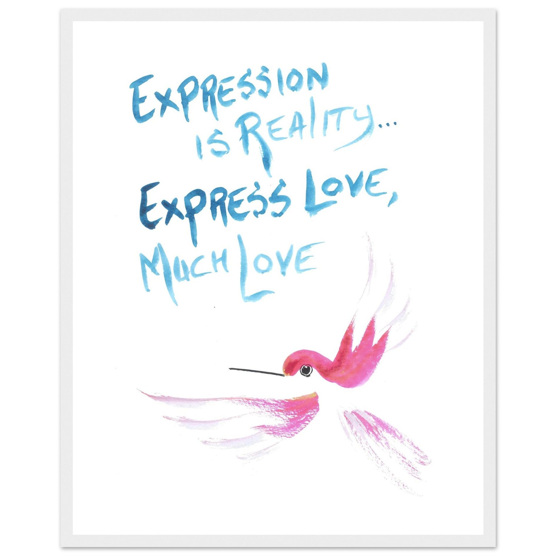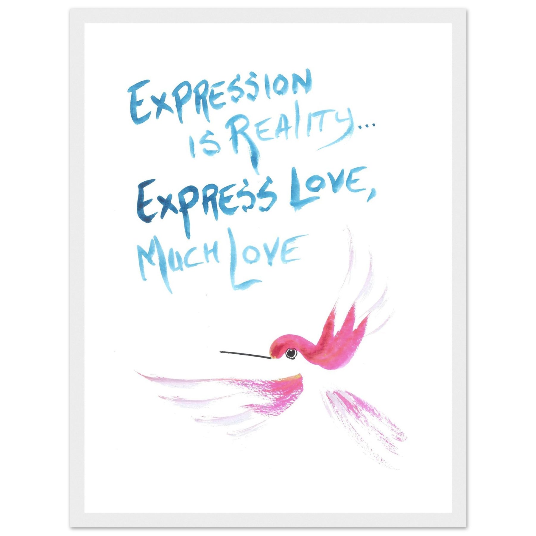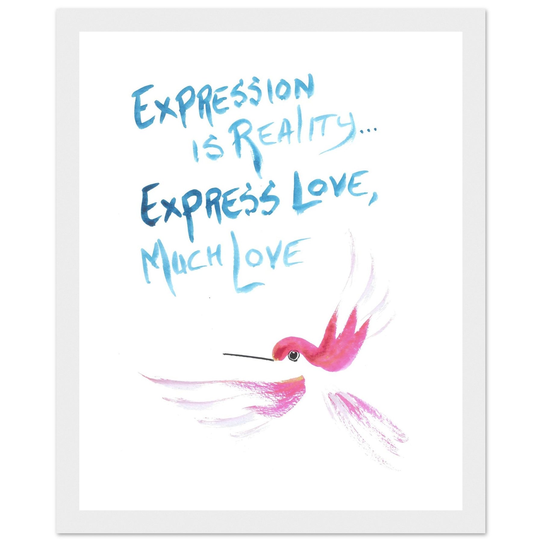 "Express Love" Watercolor Wall Art: Hummingbird Philosophy Series - Premium Matte Framed Art Print
