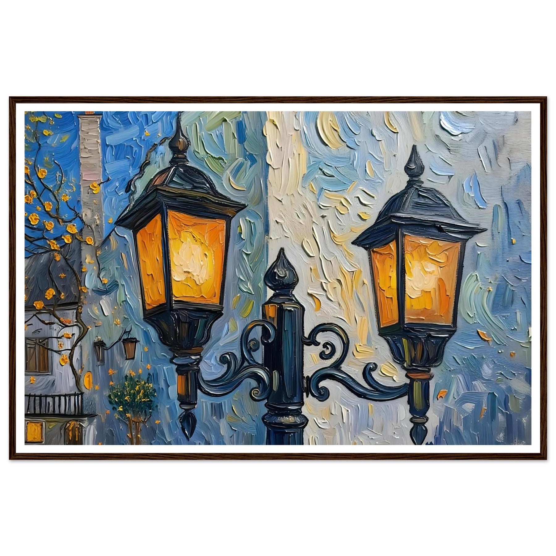 Charming Lantern Glow – Cozy Nighttime Wall Art - Premium Matte Framed Print