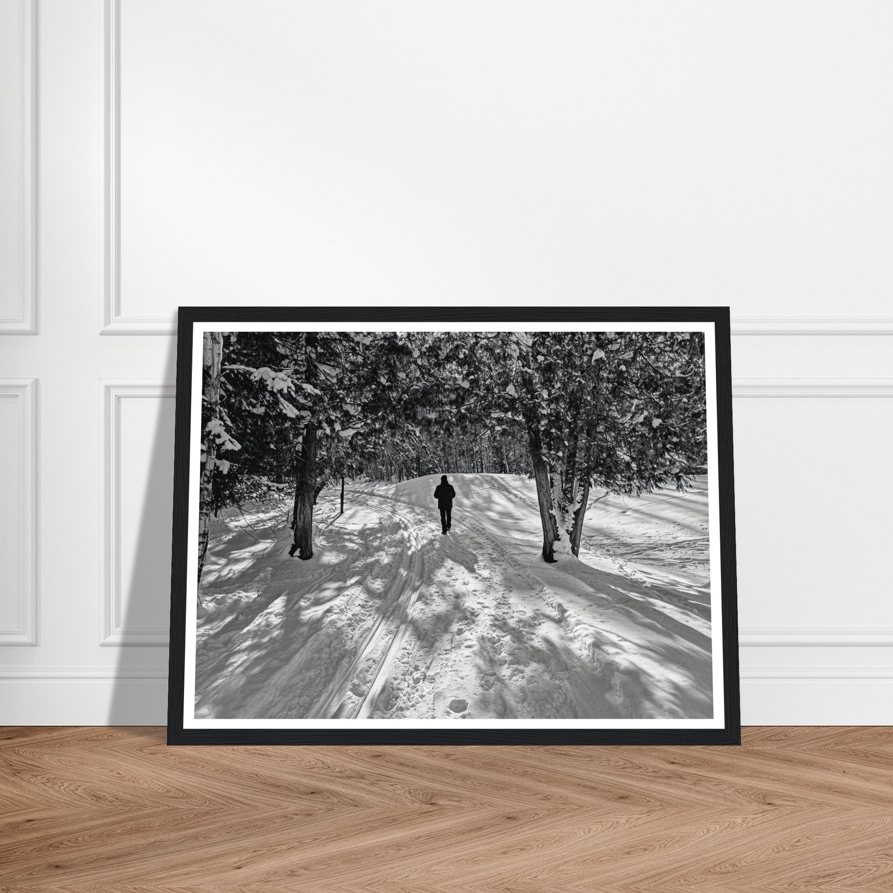Snowy Path in Monochrome Beauty - Premium Matte Framed Art Print