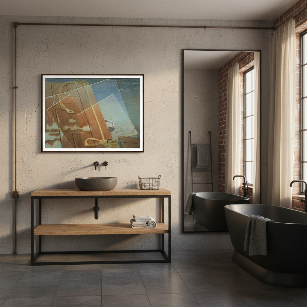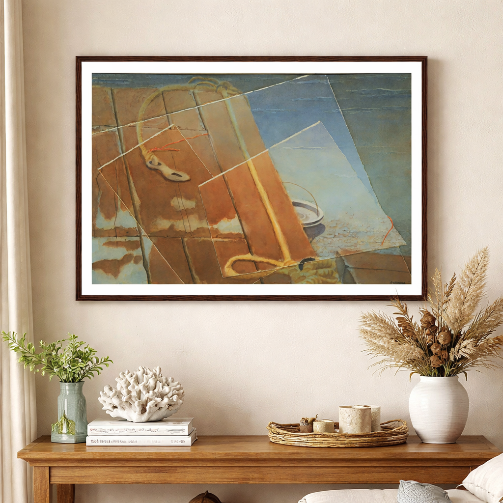 « Sotto la Superficie » révèle une méditation à plusieurs niveaux sur la perception, la mémoire et les vérités enfouies. Des planches rouge rouille, des lignes entrecroisées et des superpositions semi-transparentes créent un manuscrit visuel où les objets semblent à la fois réels et mémorables. De subtils reflets évoquent des profondeurs cachées et des récits fragmentés. Les plans mouvants de la composition, tels des fenêtres, offrent des perspectives sur l'eau, le temps et l'archéologie personnelle – une excavation silencieuse de ce qui se cache sous le visible. Une œuvre poétique qui mérite un regard attentif et invite à l'interprétation.