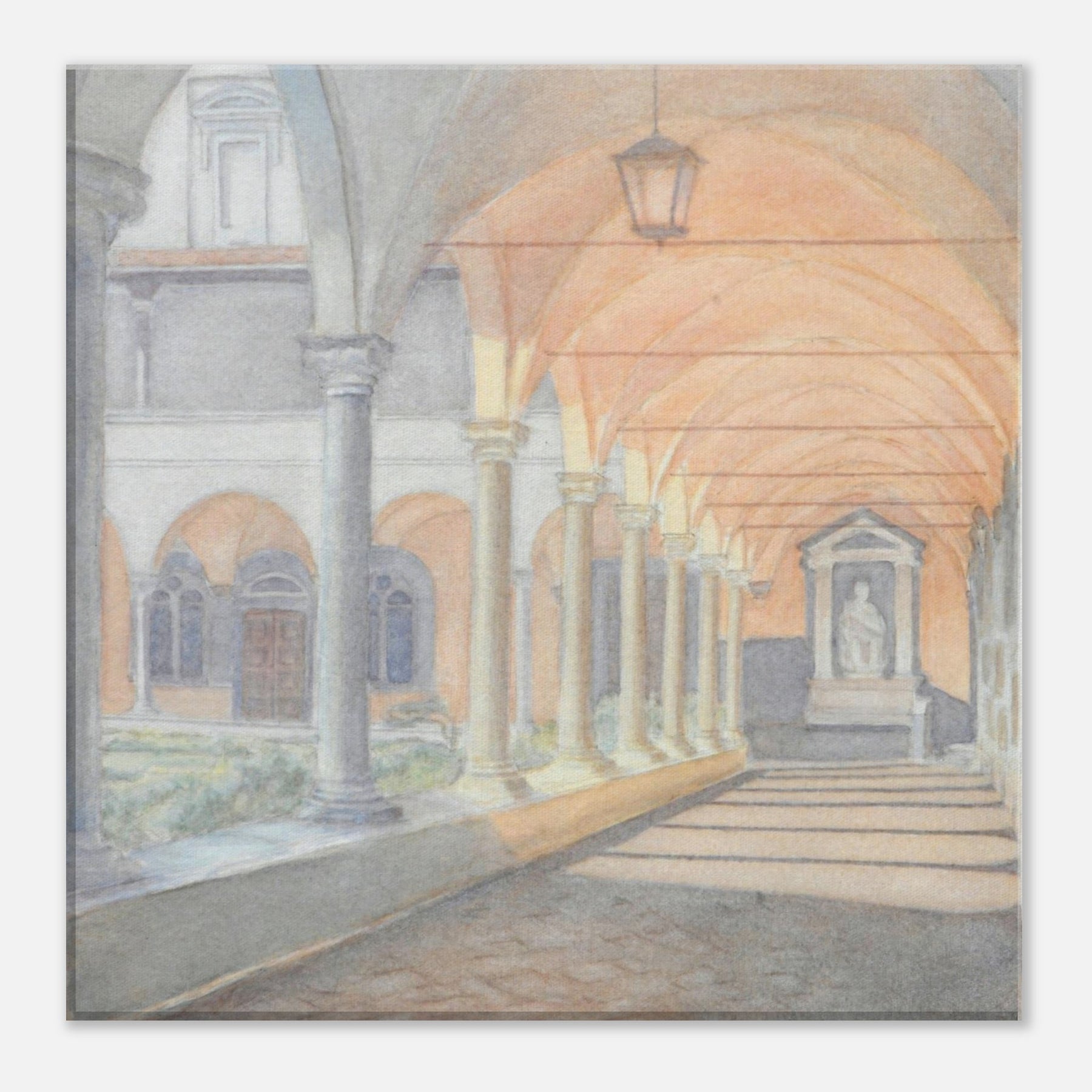"San Lorenzo Cloister" Tranquil Historical Watercolor Art Print - Canvas