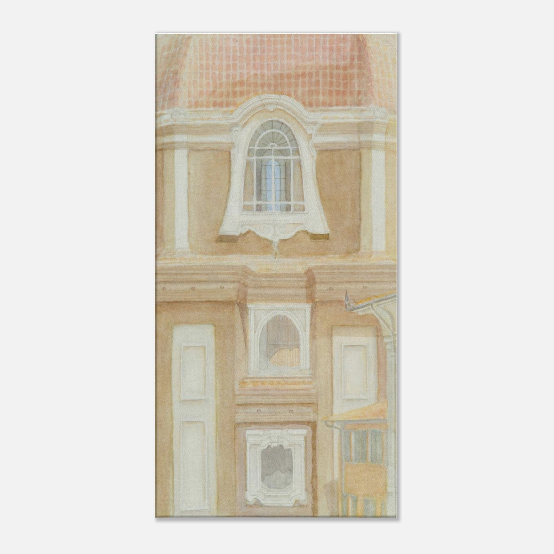“Vista delle Cappelle Medicee n. 2” captures the elegance of Renaissance architecture with grace and restraint. This vertical watercolor painting draws the eye upward along the intricate façade of the Medici Chapels in Florence. Each window and cornice is rendered with soft detail and luminosity, paying homage to Italian craftsmanship. Perfect for adding vertical visual interest and architectural refinement to a space, this piece brings the spirit of Florence into any interior.